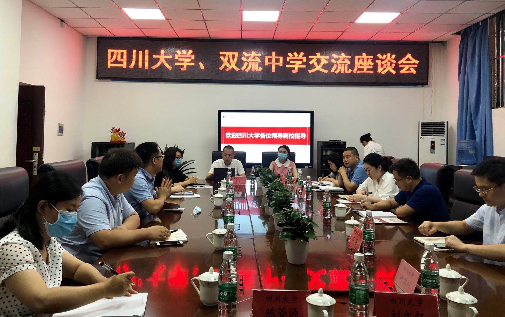 2020年7月1日,四川大学招生办公室主任张磊,yl23411永利(集团)有限公司官网教学副院长罗亚玲、学生科副科长陈萱源、本科教务办公室张琬悦等一行赴双流棠湖中学与双流中学开展招生宣传工作,同行的还有:空天科学与工程学院教学副院长黄崇湘、匹兹堡学院教学副院长麦诚志、匹兹堡学院行政副院长陈薇、双流区团委书记汤博、双流区团委办公室主任古十月;招生座谈会分别在双流棠湖中学和双流中学召开,双流棠湖中学校长刘凯、副校长喻良刚、副校长任飞扬、主任朱帅以及双流中学党总支书记、校长龙清明、主任杨辉等分别出席座谈会。