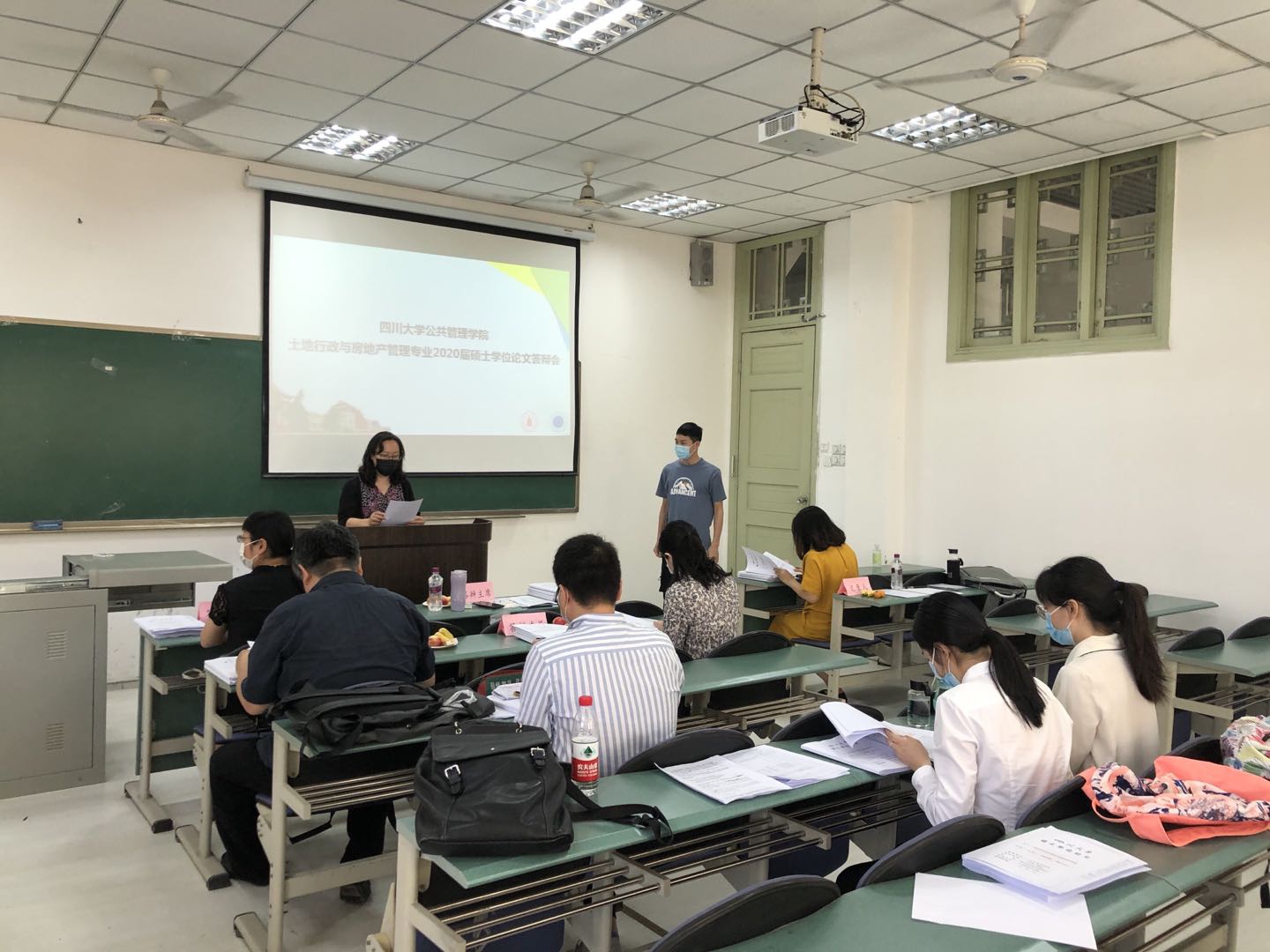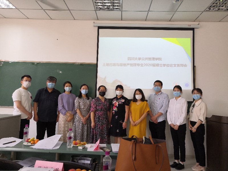 2020年5月18日,土地资源与房地产管理系2020届硕士学位论文答辩会在yl23411永利(集团)有限公司官网214教室成功举行。四川农业大学管理学院院长傅新红教授应邀作为答辩主席,主持了本次答辩会。答辩委员会成员包括四川省社会科学院高杰副研究员、土地资源与房地产管理系刘润秋教授、杨智恒副教授、马爱慧副教授、董欢副教授。土地行政与房地产管理专业4名研究生参加了此次答辩会。