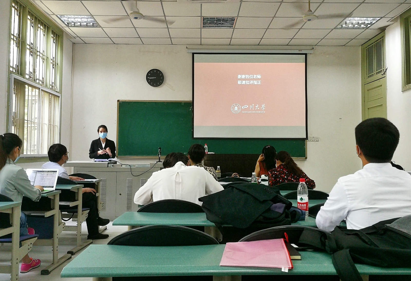 此次答辩会严格按照四川大学硕士学位论文答辩的程序和要求进行。18日上午9点整,在答辩秘书宣读学位评定分委会批复之后,答辩主席强调了答辩的程序和要求,答辩正式开始。两组同学按照顺序上台进行汇报,重点陈述了论文的选题背景、研究方法、研究过程、主要研究结论以及针对外审意见所作的修改等内容。在每位同学汇报之后,答辩组专家就论文内容进行了严谨细致而有针对性的提问与点评,并提出了许多宝贵的修改意见,各位同学就专家提出的问题一一作答,虚心接受老师们的指导和建议。