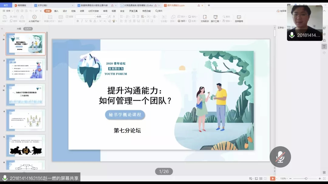 三位主讲人完成演讲后,现场的同学通过QQ群语音的方式进行相应主题的分论坛讨论。分论坛的九个主题围绕秘书工作的发展以及青年胜任力的展望进行讨论,各论坛的主题如下表所示: