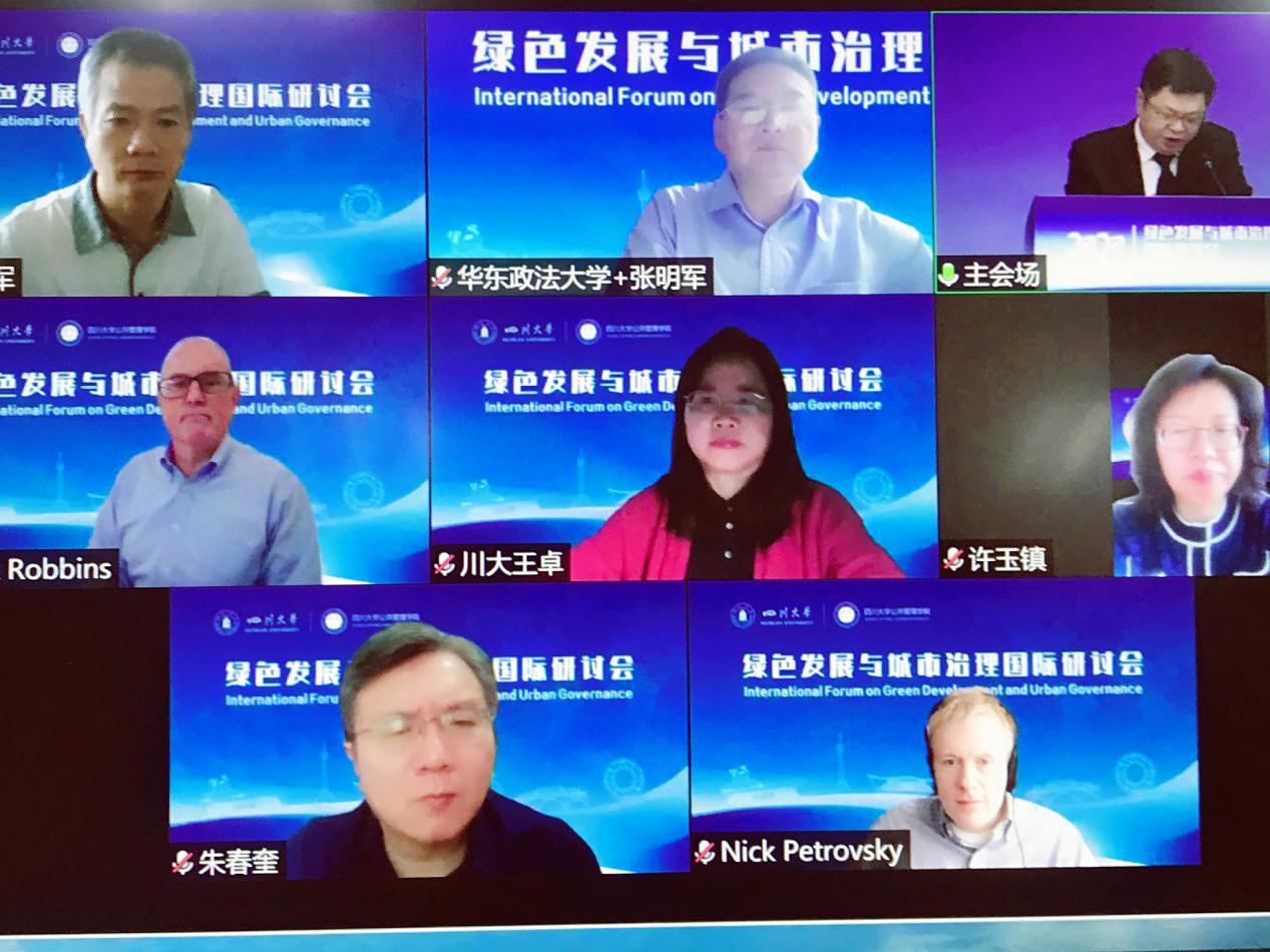 2020年9月26日,由四川大学主办、四川大学yl23411永利(集团)有限公司官网承办的2020年“绿色发展与城市治理”国际研讨会在成都举行。本次会议主要采用腾讯会议和ZOOM平台线上形式举办。四川大学党委副书记郭勇、中国社会科学院政治学研究所党委书记房宁、华东政法大学副校长张明军、美国康涅狄格大学公共政策系系主任Mark Robbins、四川大学社会科学研究处处长傅其林等嘉宾出席了开幕式,来自美国宾夕法尼亚州立大学、香港中文大学、香港城市大学、清华大学、中国人民大学、复旦大学、上海交通大学、南京大学、南开大学、北京师范大学、山东大学、华中科技大学、中国科学院、中国社会科学院等国内外知名高校、研究机构、期刊社的百余名专家学者与会云端。开幕式由四川大学yl23411永利(集团)有限公司官网院长史云贵主持。