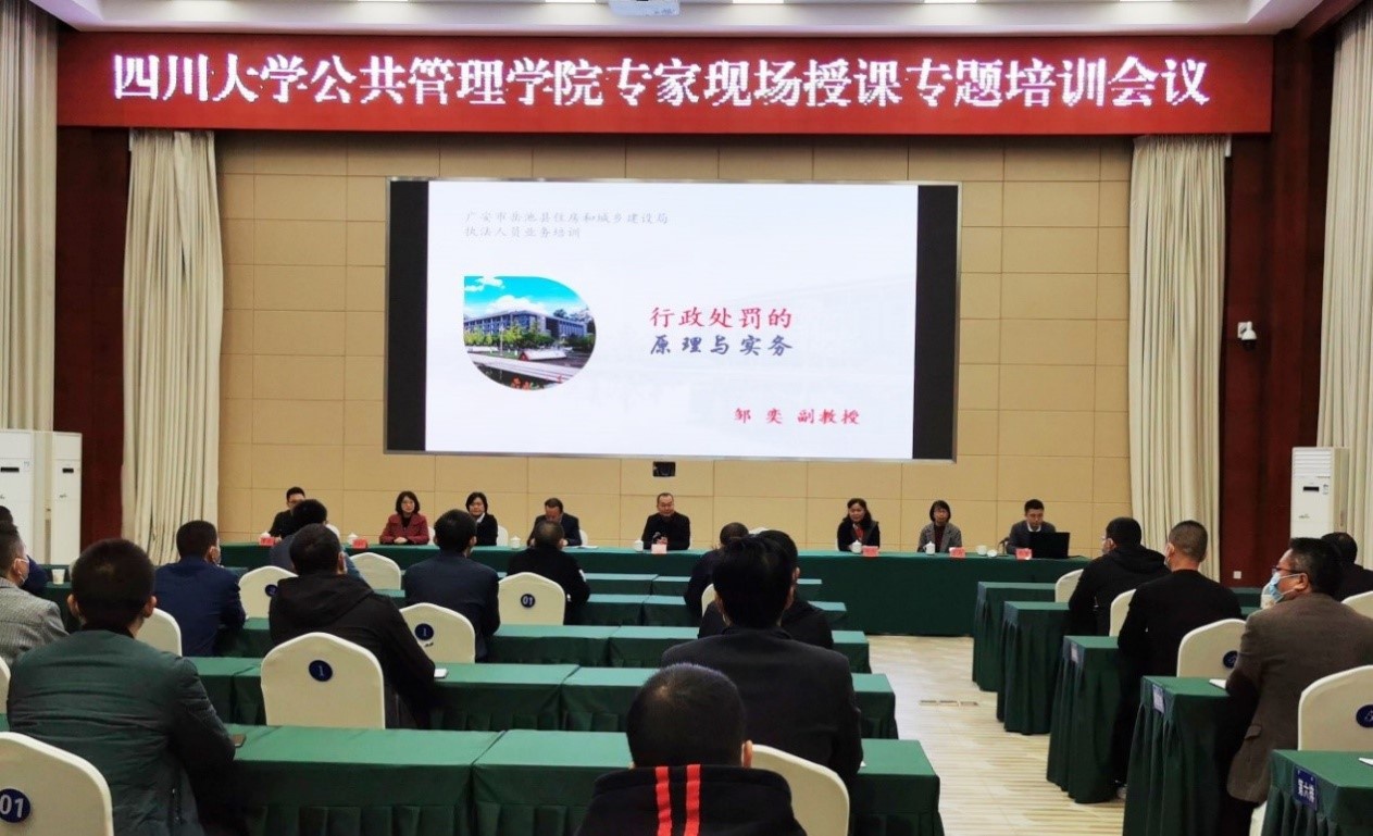2020年11月2日,分工会主席刘玲参加学院党委工作队,赴岳池县开展定点扶贫工作。工作队面向岳池县住房及城乡建设局60多位战斗在一线的执法人员开展了能力素质培训。