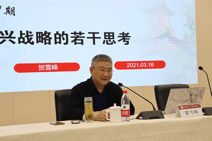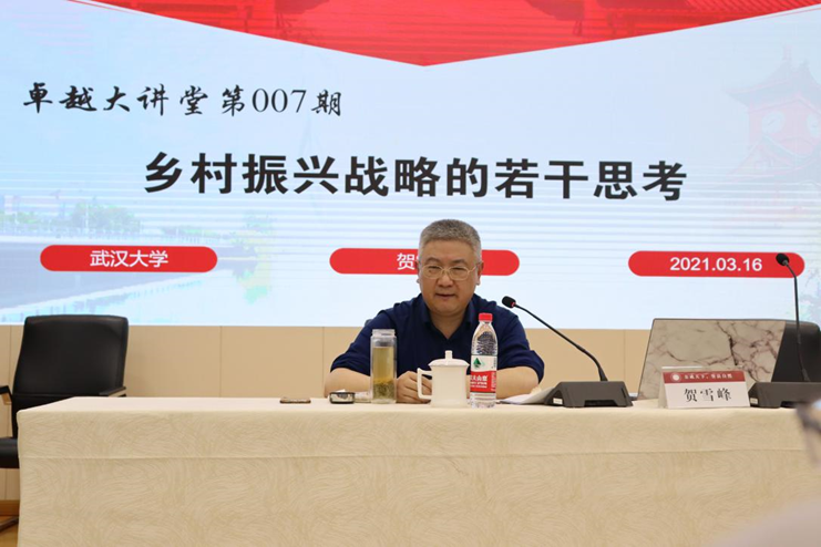 2021年3月16日,武汉大学社会学院院长,博士生导师,社区治理专家委员会成员贺雪峰教授应邀到访我院,为我院师生作题为“乡村振兴战略的若干思考”讲座。