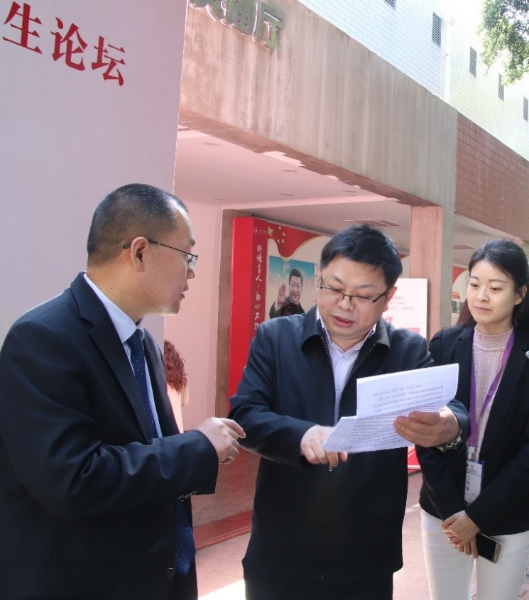 郭勇副书记(中)和我院史云贵院长(左)、董欢老师(右)合影