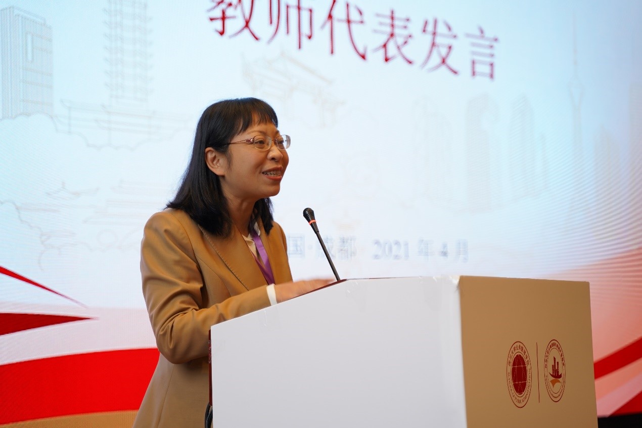 接下来由系主任刘润秋教授上台发言。她说“四川大学土地资源管理20周年系庆的成功举办离不开后台所有同学们的努力,但实际上这背后凝聚的是历届校友的力量,展现的是每一位土管人的风貌和管理能力,只有两个词:感谢和感动。”