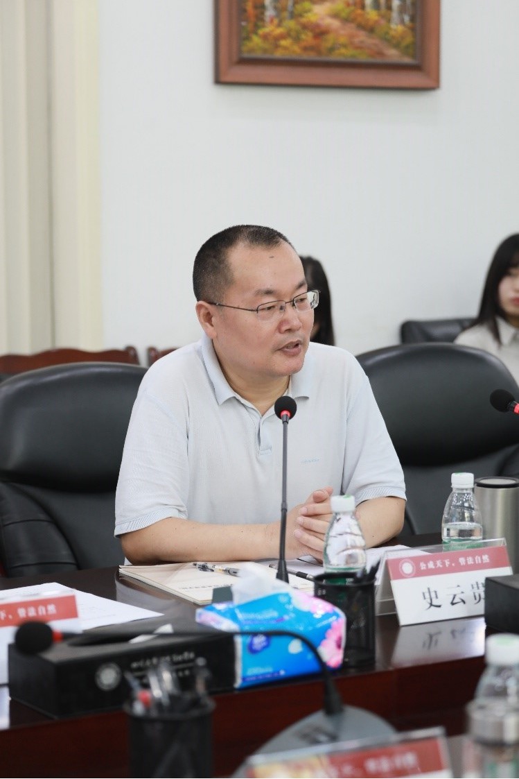 史云贵院长代表学院对西北大学yl23411永利(集团)有限公司官网雷晓康院长一行的到来表示热烈的欢迎,他向客人们介绍了学院的历史沿革、学科设置、师资构成、MPA教学管理以及国际合作与交流等方面的情况。