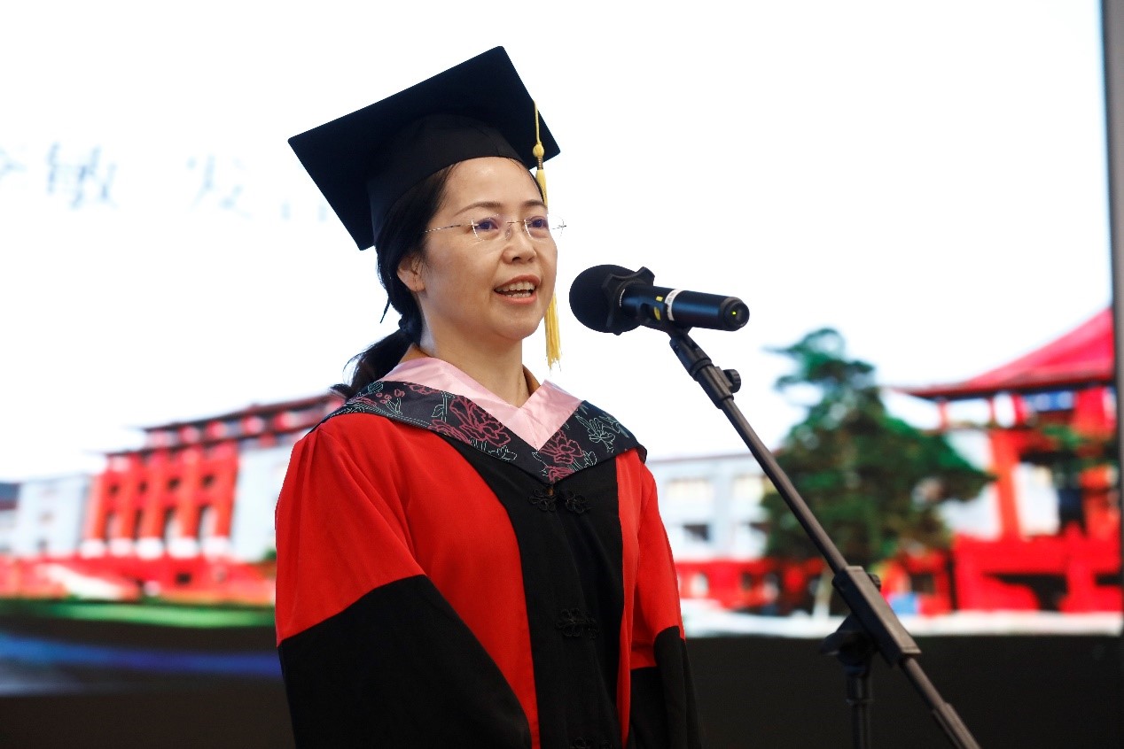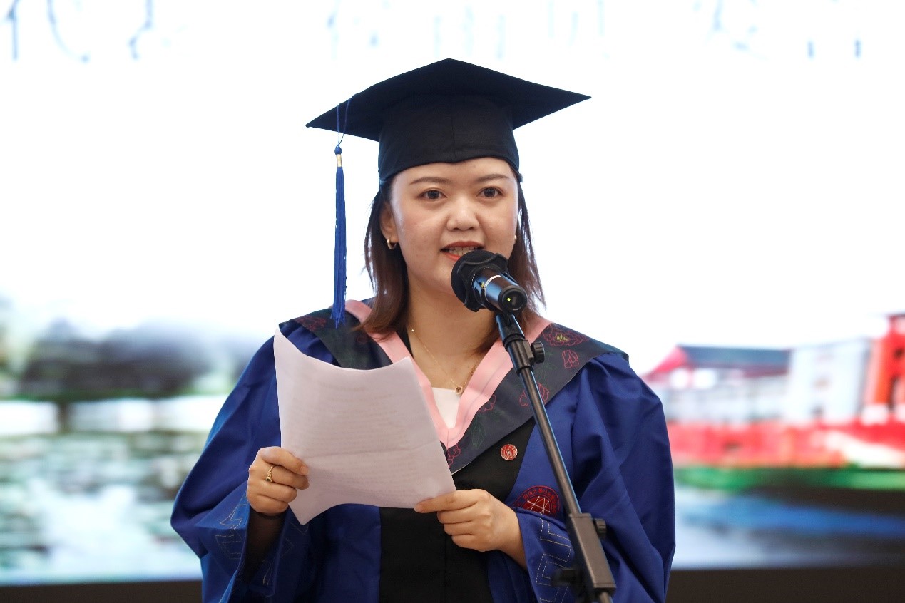 侯雨贝同学代表全体MPA毕业生发表了充满感恩情怀的毕业感言。她回顾了在川大三年研究生时光里的美好与成长,向母校和孜孜不倦的老师们表达了由衷的感谢,同时也要感谢不安现状、寻求突破的自己。她总结道:虽然毕业生们即将离开校园,但无论身在何方、去向何处,都要始终秉承“海纳百川、有容乃大”的川大精神,时刻牢记“公成天下、管法自然”的院训宗旨,以昂扬之姿、奋斗之态迎接未来人生的崭新篇章。