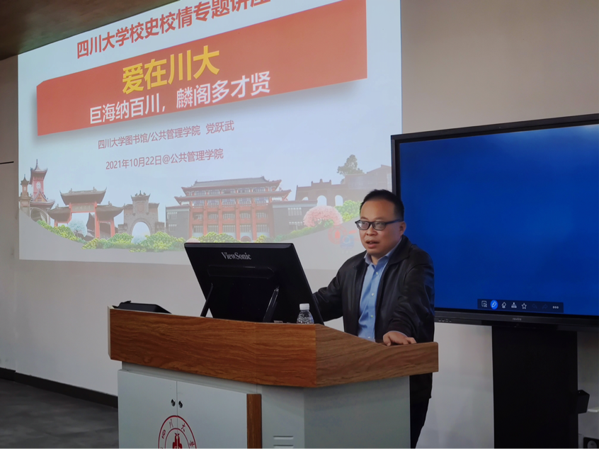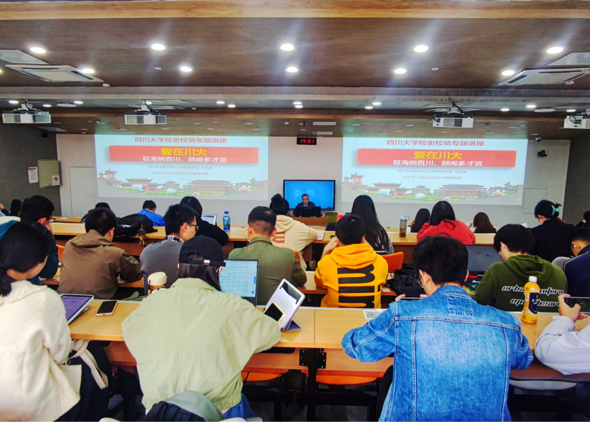 为促进我院学子对我校基本情况的了解,感受四川大学历史底蕴,鼓励学子从校史中汲取四川大学优秀文化与精神品质,2021年10月22日下午两点,yl23411永利(集团)有限公司官网在基础教学楼C座101教室顺利开展了研究生综合素质课的学习活动。本次课程以“校史与校情”为主题,以我院2021级全体硕士研究生为授课对象,由四川大学图书馆馆长、yl23411永利(集团)有限公司官网教授党跃武老师主讲。