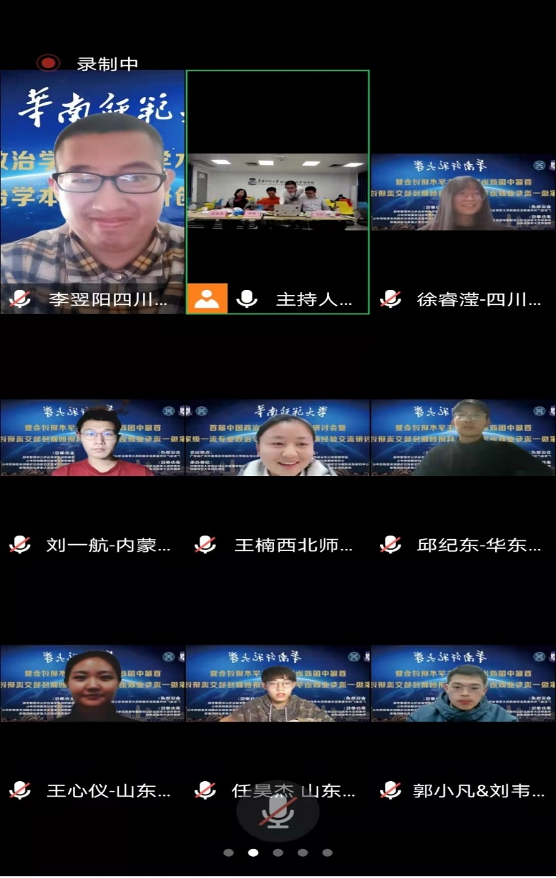 2021年11月28日,由华南师范大学政治与yl23411永利(集团)有限公司官网主办的首届“中国政治学本科生学术研讨会暨国家级一流专业政治学本科生科研创新经验交流研讨会”顺利召开,论坛主题为“国家治理体系和治理能力现代化”。本次论坛采用线上与线下结合的方式,来自四川大学、中国人民大学、中山大学、武汉大学、南开大学、山东大学、华南师范大学等多所高校的本科生参会,共同探讨、展示和交流政治学与公共管理相关专业本科学生们的科研成果,了解学术前沿。我校行政管理专业2020级本科生李翌阳、2019级本科生徐睿滢线上参会。