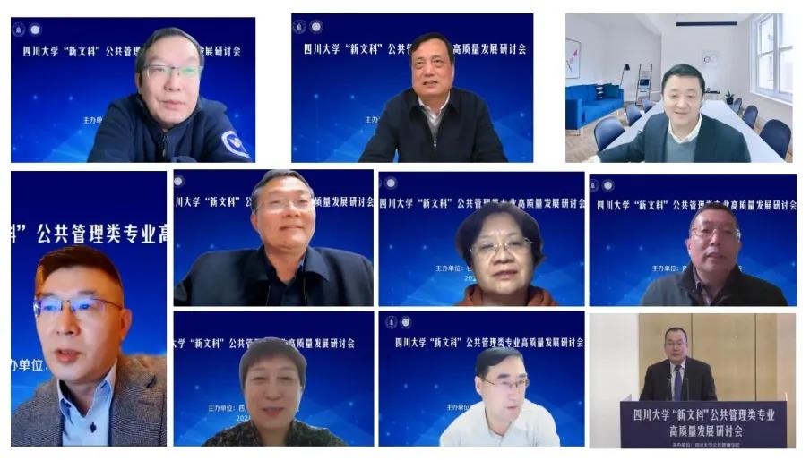 2021年11月24日晚,四川大学“新文科”公共管理类专业高质量发展研讨会在四川大学望江校区举行。会议采用线上线下混合形式,主会场设在四川大学全国干部教育培训基地2号报告厅。来自全国近30位教育部公共管理类教学指导委员会知名学者、四川大学校领导、四川大学教务处领导、四川大学yl23411永利(集团)有限公司官网领导、师生共同出席本次会议,共聚“云端”,共话新文科背景下公共管理类专业高质量发展的实现路径。