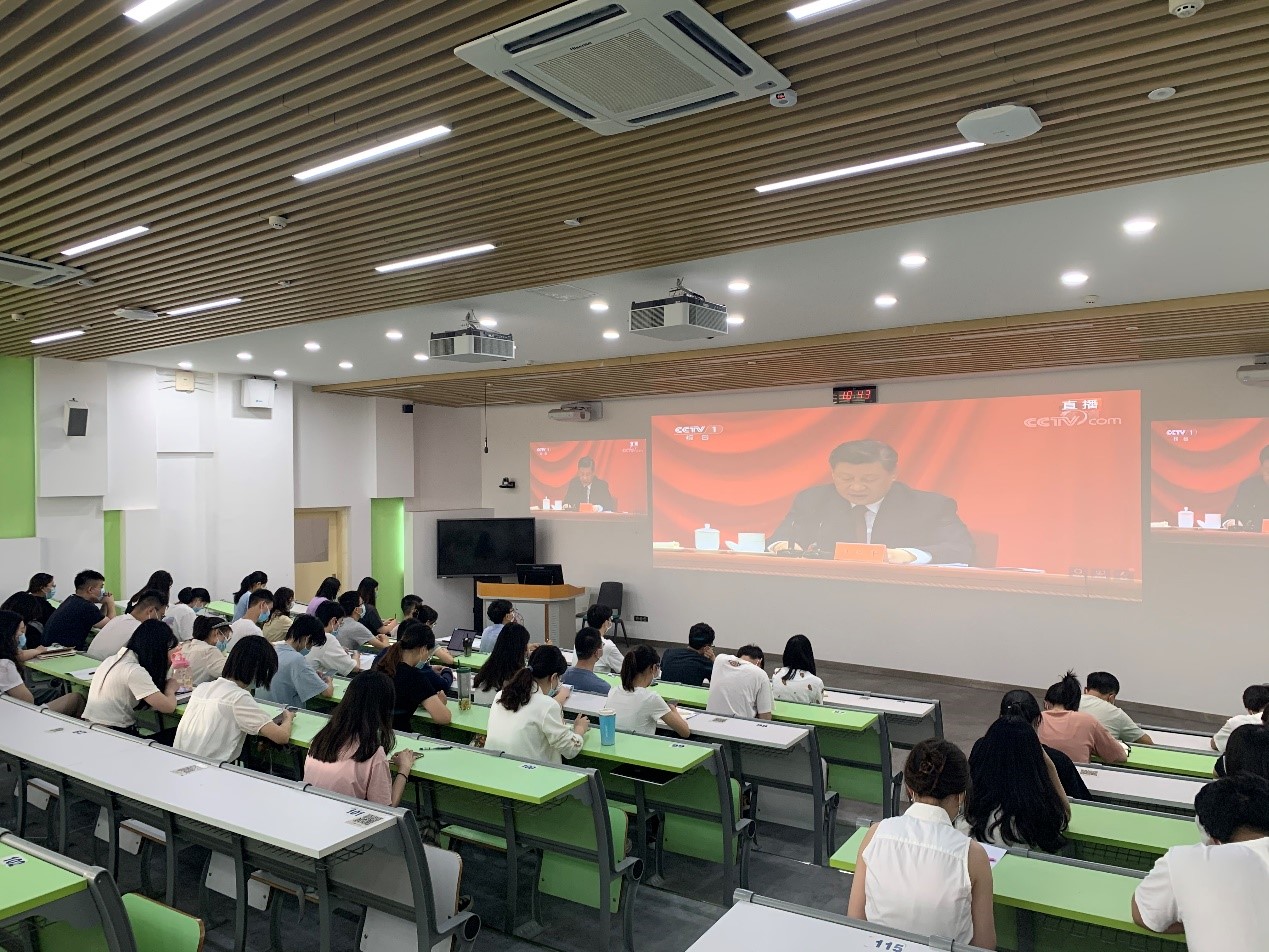5月10日上午,yl23411永利(集团)有限公司官网开展收听收看庆祝中国共产主义青年团成立100周年大会直播活动,在萃文楼210教室设置学院集中收看点,在各校区、各宿舍组织师生收听收看。学院中层领导干部、党委委员、支部书记、科级干部、青年教师和学生代表在学院集中收看点观看,其他师生分别在活动室、宿舍等地收听收看。