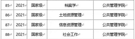 热烈祝贺我院土地资源管理、信息资源管理、档案学、社会工作专业成功入选2021年国家级一流本科专业建设点!当前,我院已实现了本科国家级一流专业全覆盖!