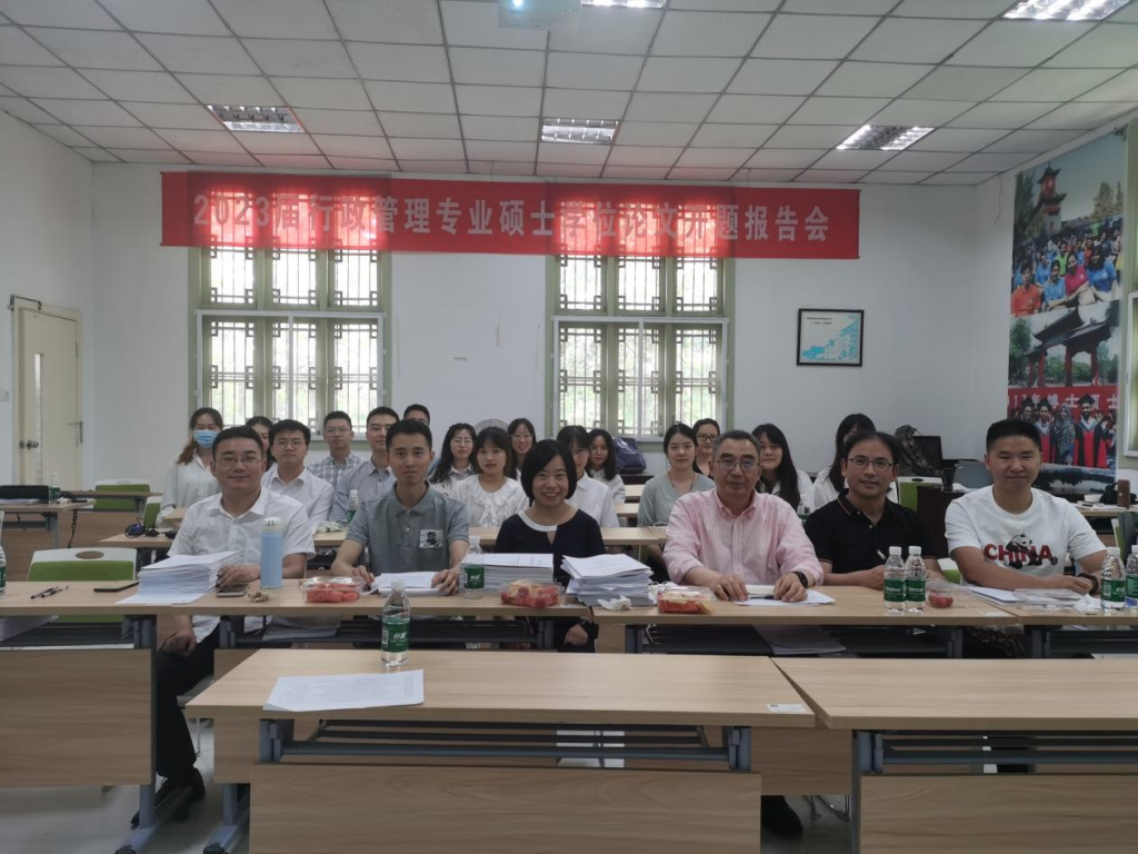 2022年6月19日,2023届行政管理专业硕士学位论文开题报告会于萃文楼305、306和307举行。本次会议由姜晓萍教授、夏志强教授、王谦教授、王敬尧教授、史云贵教授、范逢春教授等21位老师担任答辩评委,2023届行政管理专业全体硕士研究生参与答辩。