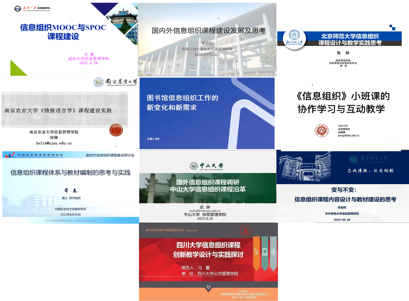 此次研讨会老师们分享了多年的课程教学经验和最新的改革举措,共同认为,信息组织是信息资源管理及相近学科专业的基础核心课程。在各高校教学中,信息资源管理、图书馆学、档案学、信息管理与信息系统、大数据管理与应用、电子商务等相关本科专业的信息组织课程平台化、模块化与个性化改革思路。