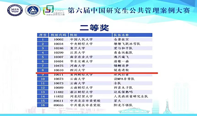 中国研究生公共管理案例大赛是我国公共管理领域规模最大、层次最高的研究生竞赛。我院MPA培养一直引导学生关注公共管理领域实际问题,提高学生运用相关理论和方法解决公共管理实际问题的能力。此次案例大赛成绩的取得,离不开学院、MPA中心及指导老师的支持与付出,离不开队员的协作与拼搏。yl23411永利(集团)有限公司官网MPA中心将继续立足西部,为培养公共管理人才贡献力量。