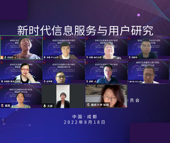2022年8月18日上午,为持续推动教学改革以适应快速发展的信息环境对信息服务人才的需求,促进国内兄弟院校教学交流,集智汇能,打造中国特色的《信息服务与用户研究》课程品牌,“新时代《信息服务与用户研究》课程建设研讨会”在线上顺利召开。本次研讨交流会由教育部高等学校图书馆学专业教学指导委员会和四川大学yl23411永利(集团)有限公司官网共同主办,来自国内一流本科专业建设高校从事《信息服务与用户研究》相关课程教学的多位资深教师共聚云端,分享课程教学经验与特色做法,共同讨论课程的未来教学改革方向。`
