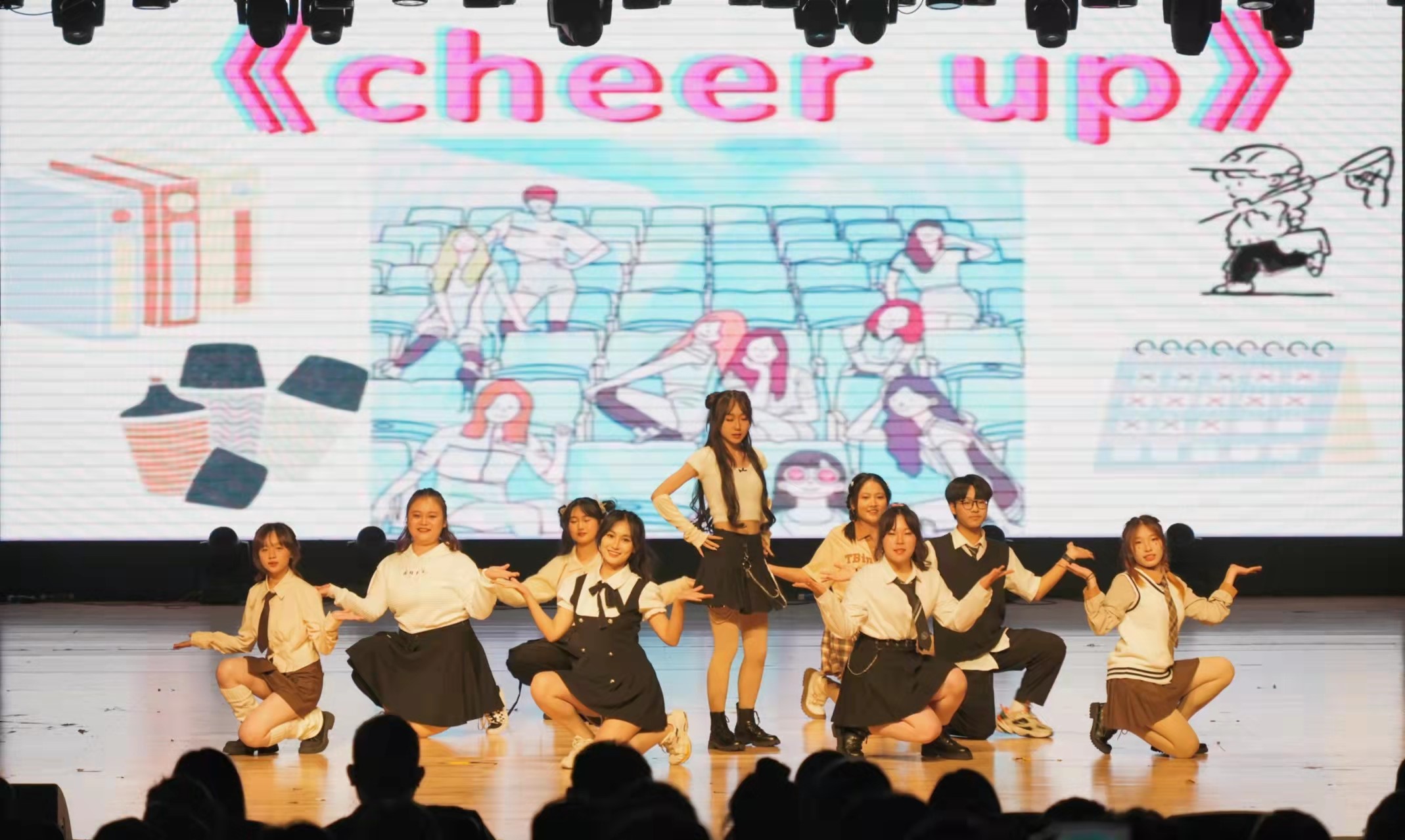 第二篇章《将展明卷以鉴其华》由2022级社会工作、社会学、应用心理专业研究生、2021级行政管理专业研究生、2022级公共管理大类专业本科生以及学生会艺术团成员带来。俏皮可爱的舞蹈《花月成双》、飒爽的街舞表演《breaking》、悠扬的《苍兰诀》、炫酷的舞蹈《Shut Down》、歌曲《夏天的梦是什么颜色的呢》将同学们的青春激情展现得淋漓尽致,小品《一波三折》编排巧妙、表演逼真,引得观众捧腹大笑,晚会气氛再次被点燃。