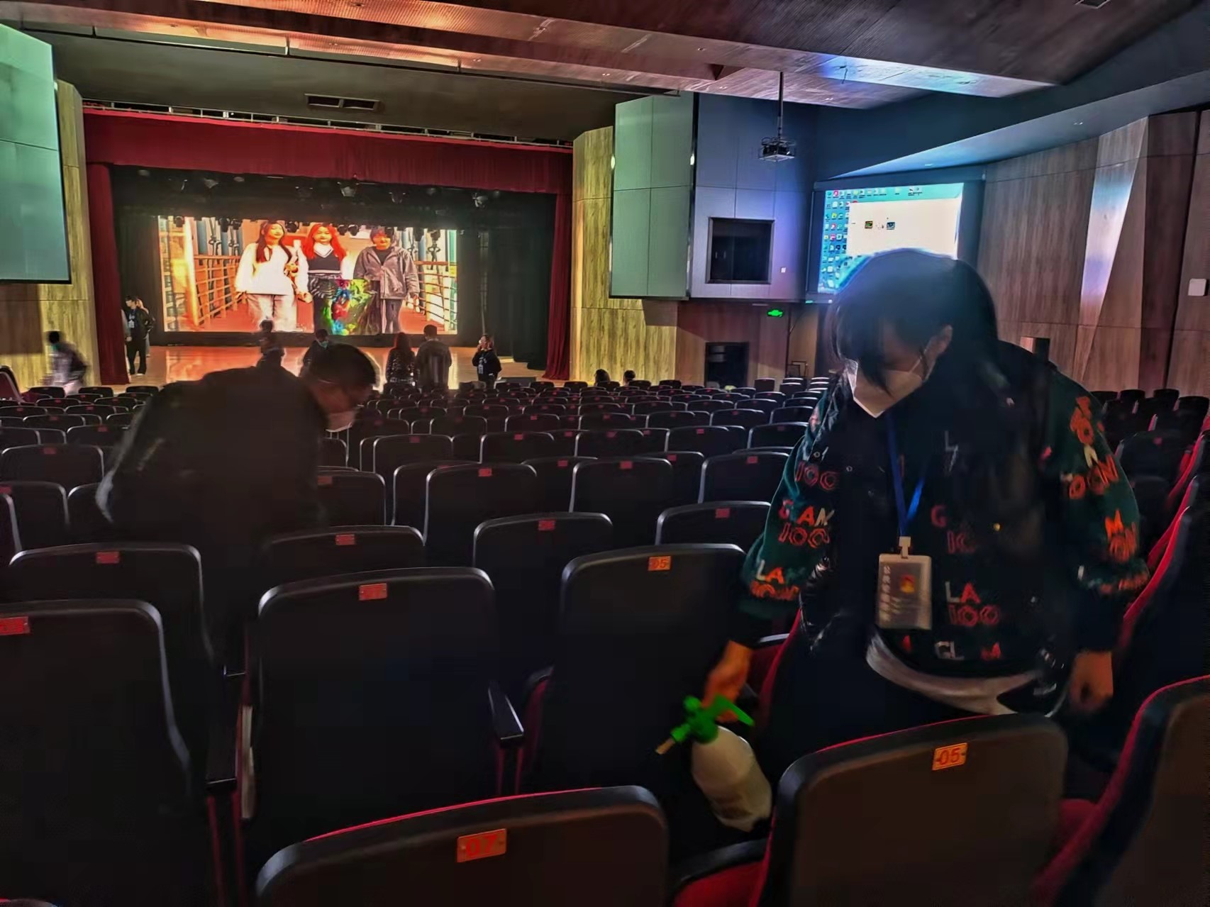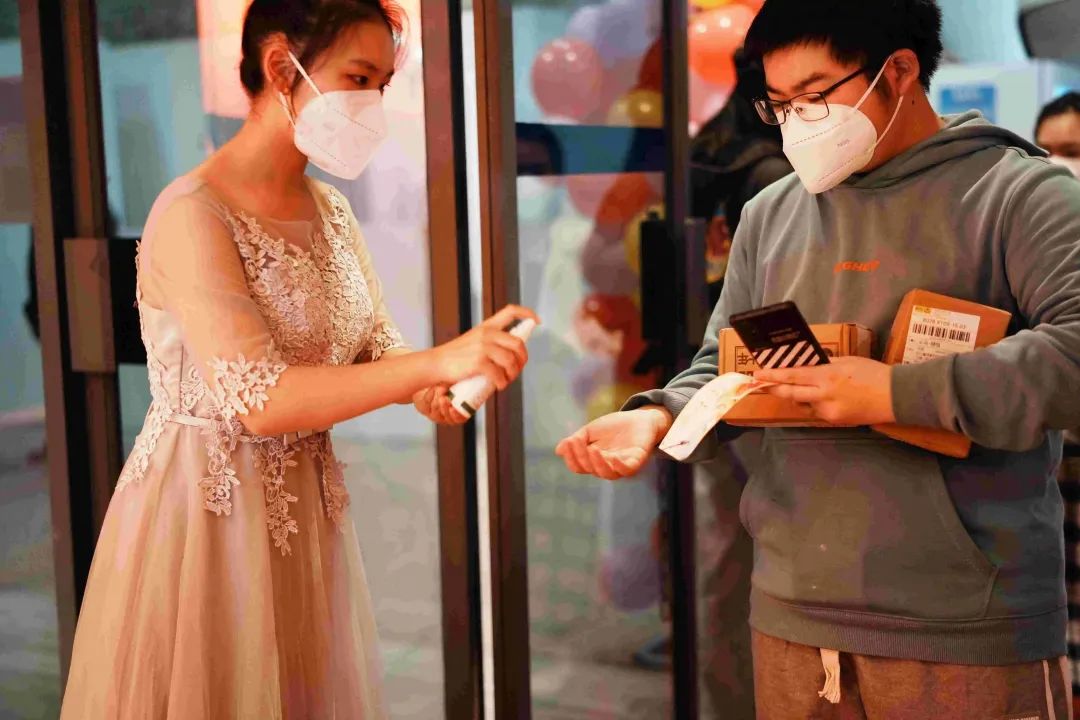 为保证晚会安全顺利举办,晚会工作组按照防疫方案对剧场完成了三次消杀,认真落实“一测三查一扫”。所有进场人员需测量体温,查验健康码、行程码、三天核酸检测阴性报告并进行手部消毒,扫码进场后晚会全程佩戴N95口罩。