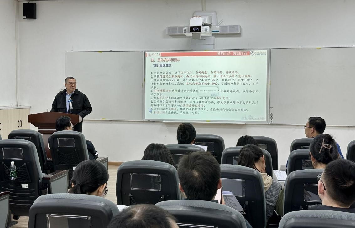 研究生招生是国家选拔高层次专门人才的重要途径,复试工作是研究生招生选拔的重要组成部分。为确保学院研究生复试工作安全有序开展,我院严格按照《2023年全国硕士研究生招生工作管理规定》,积极响应学校部署,结合学院实际情况,统筹规划,提前部署,成立了研究生复试工作领导小组、复试工作小组、舆情小组和保障小组四个小组,同时开展了硕士点负责人、复试专家、考生三级培训。