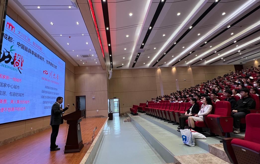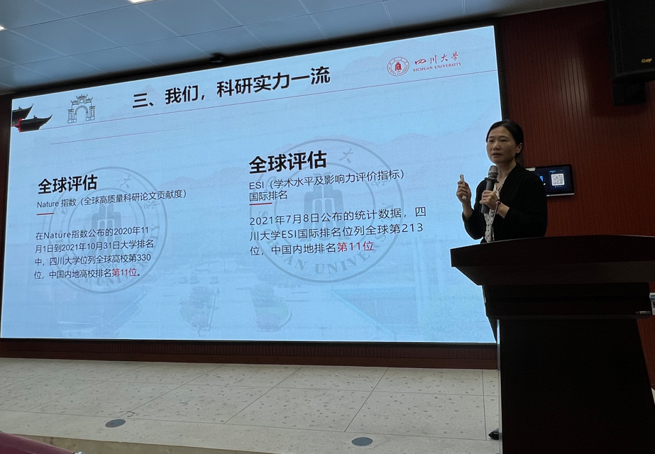 下午,招生组来到广西另一所名校柳州铁一中学,与该校领导及高三年级组相关老师进行深度交流。随后,招生组老师为高一、高二的学生进行了讲座,廖爱民副主任介绍了四川大学的办校历史、本科教育、学科实力及校园环境,希望在同学心中播下一颗报考川大的种子。曾菊梅副教授为同学们带来《魔高一尺,道高一丈:传染病药物发现》的科普讲座,用简洁易懂的语言向同学们介绍医学类相关知识,点燃同学们从事科学研究的热情。
