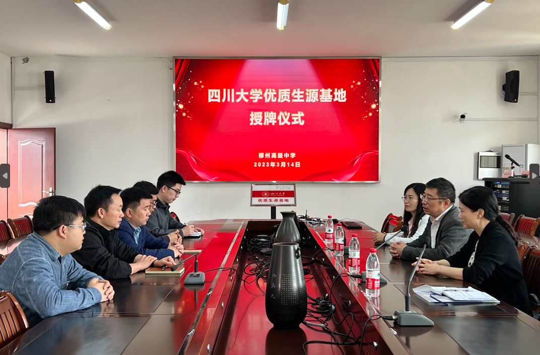 3月14日上午,招生组拜访了近年来川大在桂录取人数最多的柳州高级中学,与学校教务处主任及高中各年级负责人进行座谈、介绍四川大学招生政策,就新高考改革和学生选科等方面进行深入交流,并与柳州高级中学签订优质生源基地协议并举办了授牌仪式。