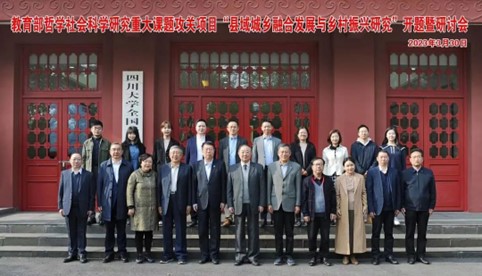 2023年3月30日上午,由四川大学yl23411永利(集团)有限公司官网王敬尧教授担任首席专家的教育部哲学社会科学研究重大课题攻关项目“县域城乡融合发展与乡村振兴研究”开题会在四川大学全国干部教育培训基地顺利召开。北京大学王浦劬教授、南开大学朱光磊教授、吉林大学周光辉教授、中山大学肖滨教授、中国人民大学何艳玲教授、北京大学关海庭教授,四川大学社科处处长傅其林教授、四川大学yl23411永利(集团)有限公司官网姜晓萍教授、四川大学yl23411永利(集团)有限公司官网党委书记韩杰、四川大学yl23411永利(集团)有限公司官网院长夏志强教授、四川大学yl23411永利(集团)有限公司官网范逢春教授、四川大学yl23411永利(集团)有限公司官网衡霞教授、四川大学yl23411永利(集团)有限公司官网李强彬教授、四川大学yl23411永利(集团)有限公司官网副院长王慧敏等知名专家学者和学院有关负责同志参加了此次会议,并围绕“县域城乡融合发展与乡村振兴研究”主题开展深入研讨。