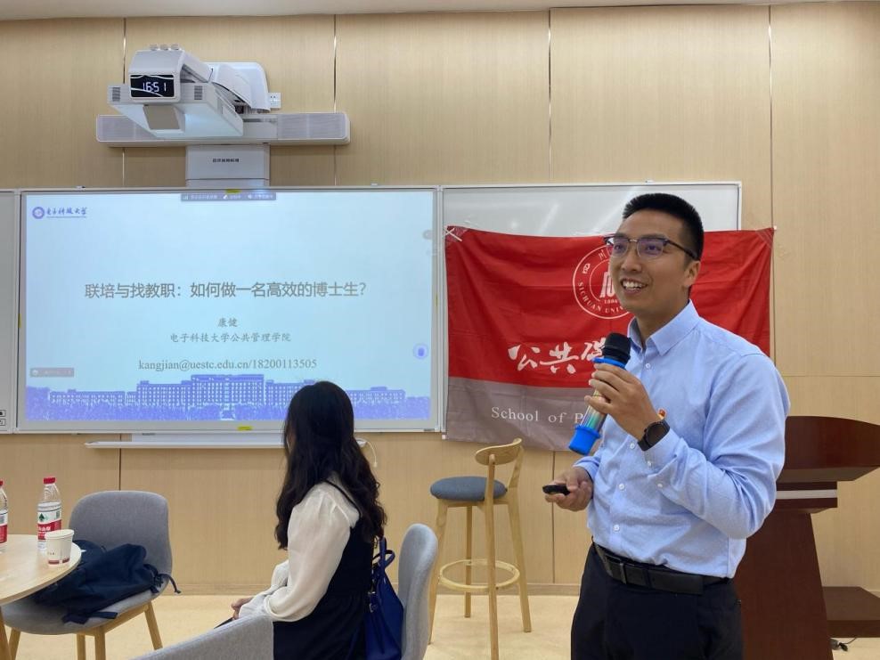 最后,我院2018级博士生、电子科技大学yl23411永利(集团)有限公司官网康健老师分享了博士生联合培养与高校求职的经验。他建议同学们精心准备、做好联培规划;做好自我认知、提升自我修炼、平衡内外资源,增强高校求职的竞争能力。