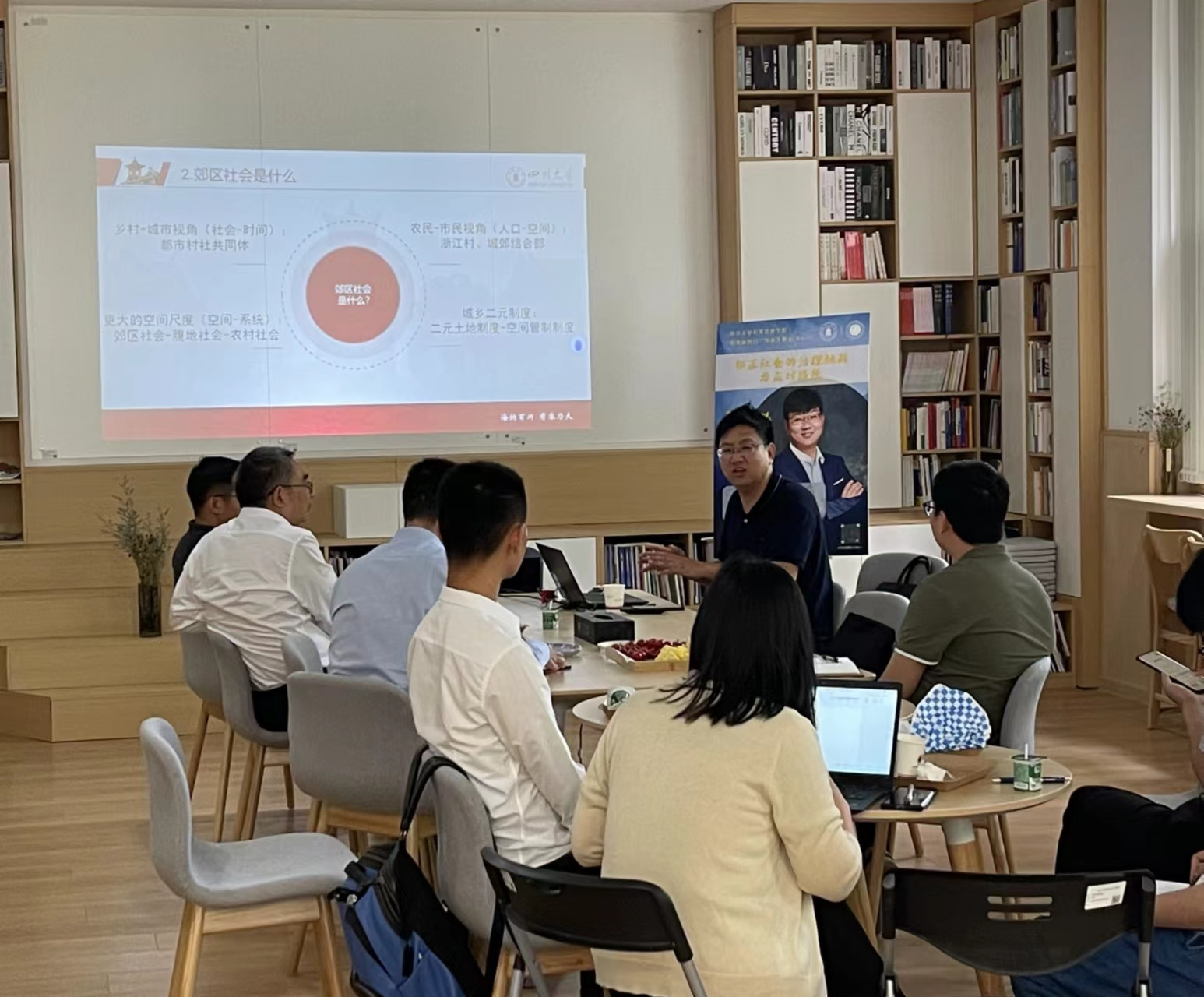 刘锐副教授从“为什么关注郊区”切入,围绕郊区社会的概念界定、研究对象、事务内容、治理问题等核心内容展开分享,并重点阐释了“由郊区转向城市——城市治理向何处去”、“系统与弹性辨证——制度重构与组织管理”两大路径的重点与难点。