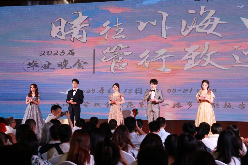 6月18日晚7点,yl23411永利(集团)有限公司官网2023届学生毕业晚会在四川大学双创示范基地一楼多功能演播厅成功举办。学院领导班子、各系教师代表、党政办工作人员、学工组老师参加了晚会。晚会由我院2023届毕业生策划筹办、联袂演出,逾500位师生、家属亲临现场。