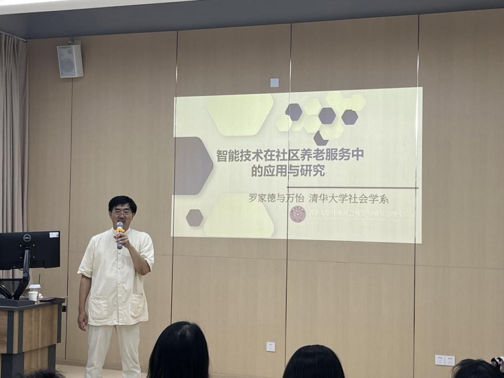 9月14日下午,清华大学社会学系罗家德教授应邀在我院210室开展了一场题为“智能技术在社区养老服务中的应用及研究”的学术讲座。我院党委副书记罗亚玲教授、副院长袁莉副教授以及张浩淼教授、李丹教授、赵英教授、沙治慧教授、马缨研究员、郑莉副教授、何明洁副教授与来自公共管理、图书情报与档案学、社会学、社会工作等专业的学生共50余人参加了讲座。