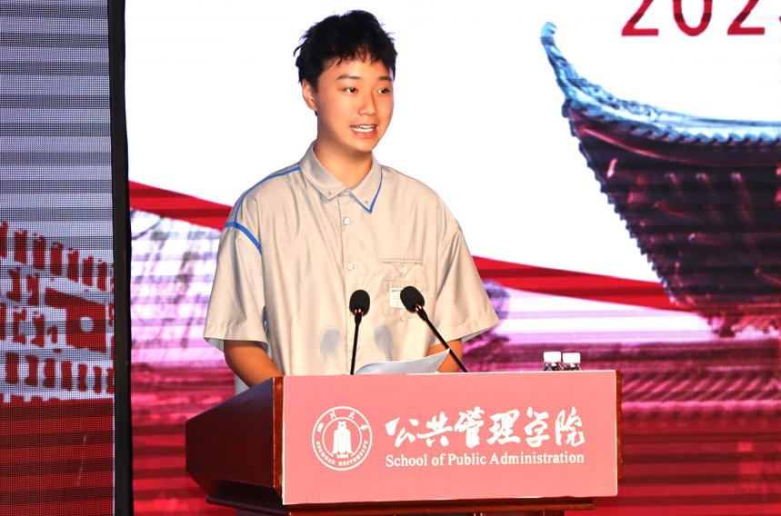 2023级公共管理大类黄圣钦同学作为新生代表向师长亲友致以感谢,向学院领导及院系老师表达了全体新生努力学习、艰苦奋斗、立志成长为时代新青年的决心。