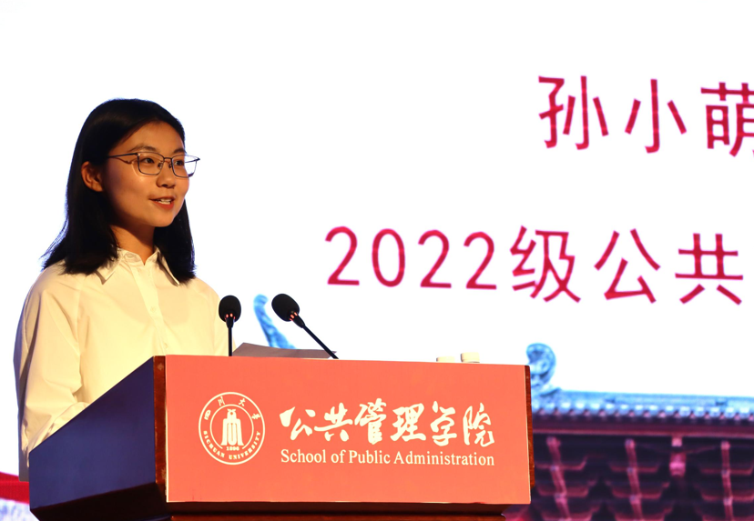 2022级公共管理大类孙小萌作为在校生代表发言,以自身经历分享了自己在川大的学习生活感受,鼓励学弟学妹们开启精彩的大学生活。