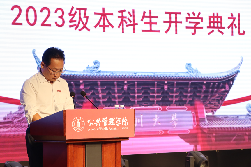 院长夏志强寄语2023级全体新同学:期望“在未来的若干年,川大因你们更优秀,公管因你们更美好”。为此,yl23411永利(集团)有限公司官网将从培养“具有崇高理想信念、深厚人文底蕴、扎实专业知识、强烈创新意识、宽广国际视野的国家栋梁和社会精英”这一目标出发,围绕人才培养的五个维度:“博雅”“专业”“开放”“创新”和“责任”,为社会培育具有博雅的基本素养、深入探索专业的学习能力、包容开放的心态、敢于创新的勇气以及强烈社会责任感的人才,夏院长鼓励同学们学以致用,成长为有温度、有关怀、有担当的社会主义事业接班人。
