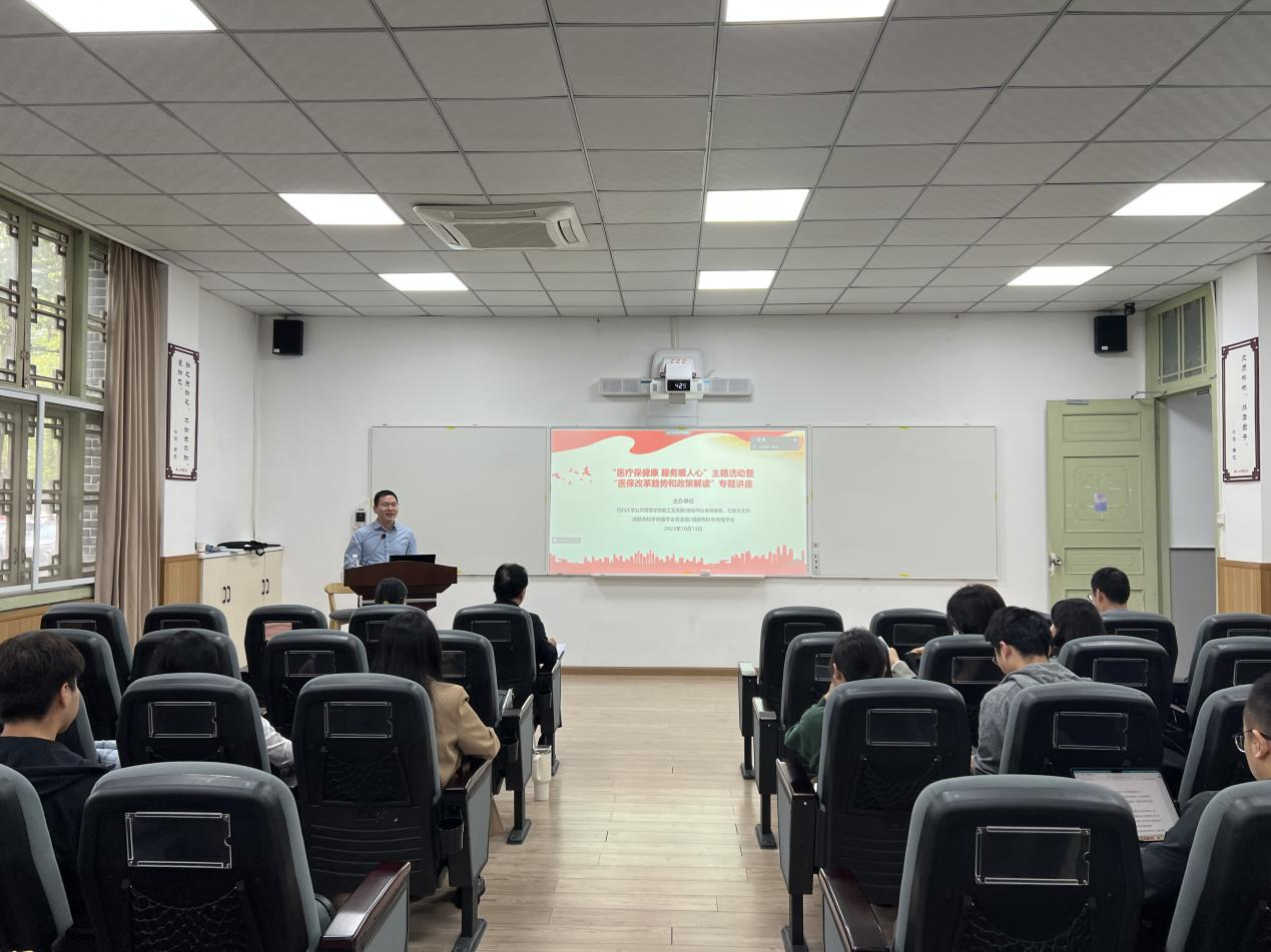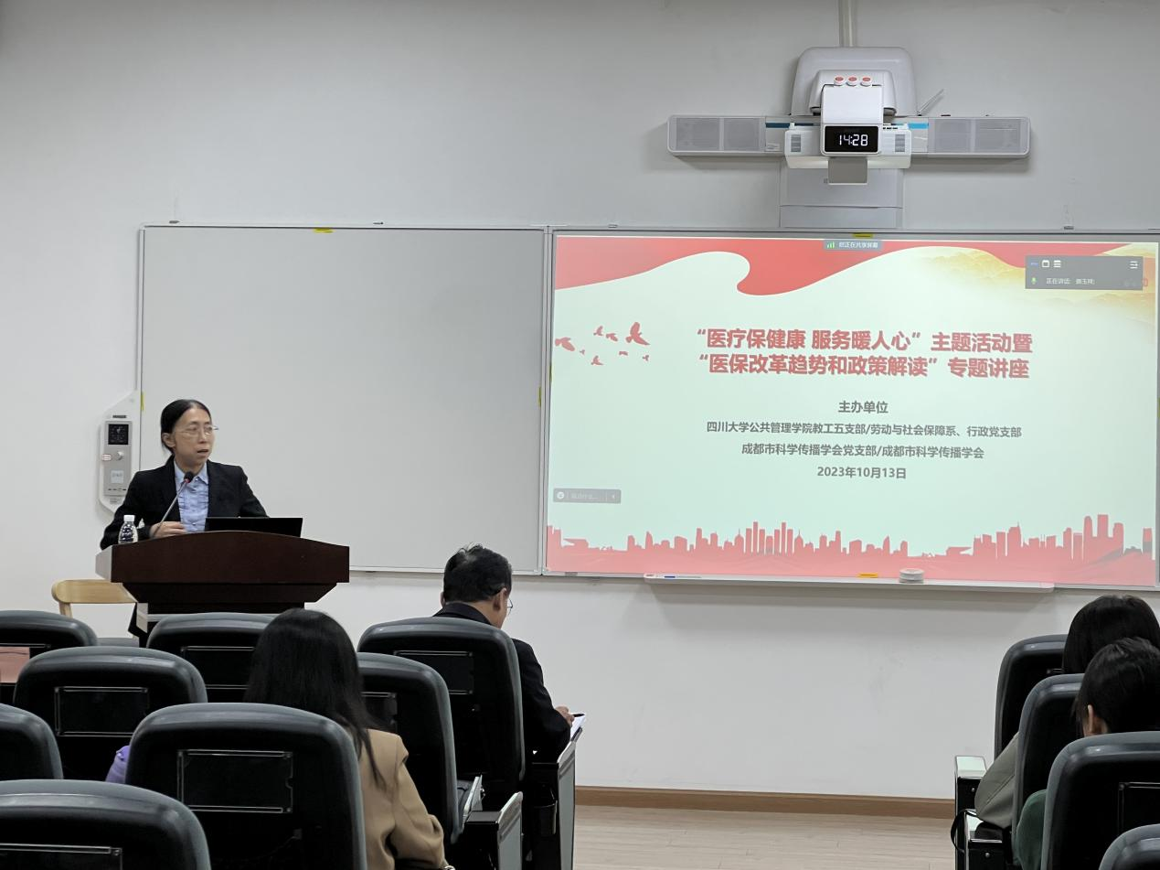 为促进党建与学科建设融合发展,进一步服务广大师生,切实推动主题教育走深走实,四川大学yl23411永利(集团)有限公司官网教工五支部/劳动与社会保障系,行政党支部,成都市科学传播学会及支部于10月13日下午2:30在四川大学望江校区yl23411永利(集团)有限公司官网共同举办了“医疗保健康,服务暖人心”主题活动暨“医保改革趋势和政策解读”专题讲座。本次活动邀请了教工五支部黄国武副教授进行分享,支部同志及校内外师生、科技工作者通过线上线下方式参加了此次活动,教工五支部吴敏教授主持活动与讲座,学院党委书记韩杰同志莅临指导。
