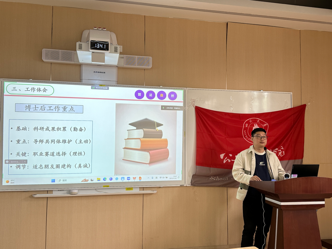 薪火相传,携手同行。本次分享会是我院青年教师对博士生坚持科研道路的鼓励,更是榜样示范和朋辈引领。希望我院博士生通过奋斗筑牢公共情怀,涵养明德定力,用青春谱写时代华章。