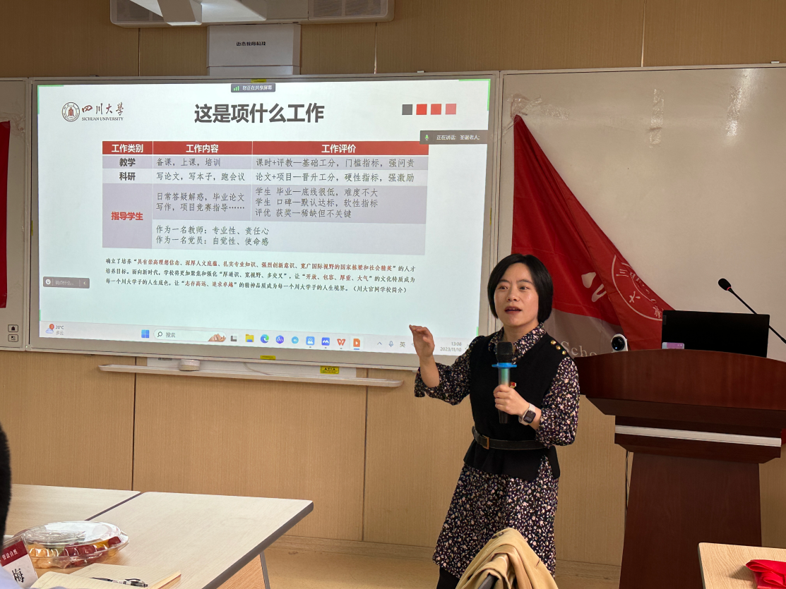 为发挥朋辈榜样作用,提升朋辈引领价值,突出青年教师高水平党建引领功能,帮助青年学生党员树立正确职业方向,11月10日,yl23411永利(集团)有限公司官网教工三支部、博士研究生第一、第二党支部在萃文楼206教室联合举办第二期“朋辈领航·博采众长”之青年教师经验分享会主题党日活动。本次活动邀请了我院教工三支部李晓梅、刘超、庞祯敬、欧阳火亮、陈垟羊五位优秀青年教师做交流。活动以线上线下相结合的方式开展,博士研究生第一支部书记李岚主持分享会。
