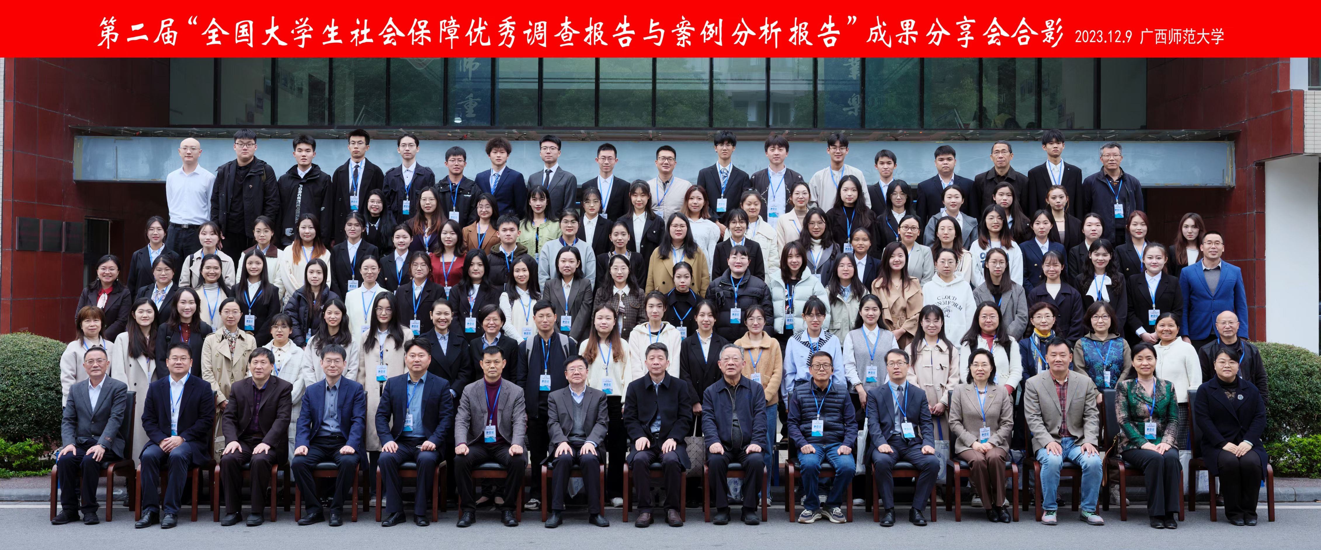 12月9日,为了鼓励社会保障专业在校大学生从课堂走向社会,发扬当代大学生“知行合一”精神,全面提升社会保障专业人才培养质量,由中国社会保障学会和广西师范大学主办,中国社会保障学会教学委员会和广西师范大学政治与yl23411永利(集团)有限公司官网承办的第二届“全国大学生社会保障优秀调查报告与案例分析报告”成果分享会在桂林成功举行。