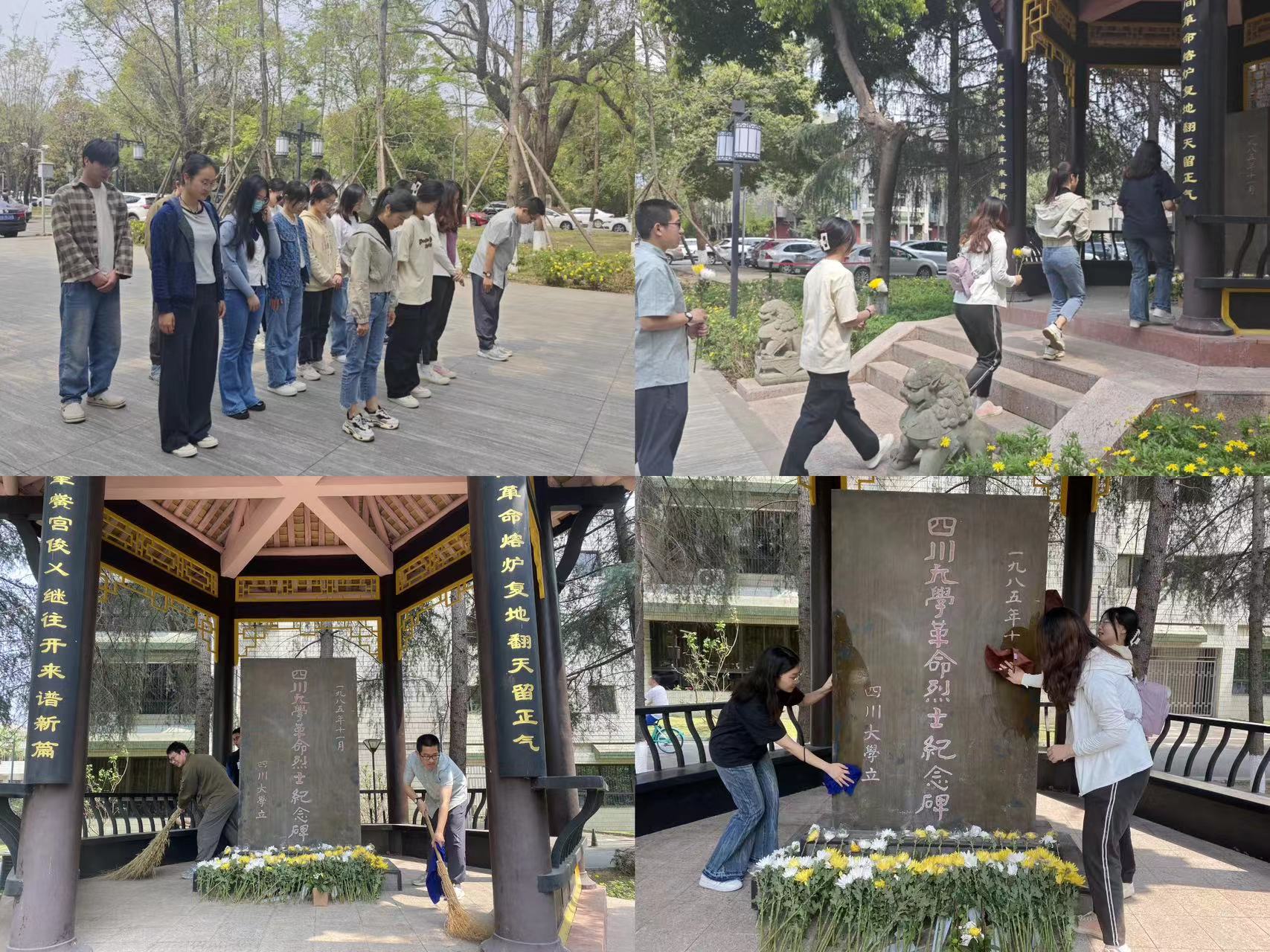 4月1日下午,yl23411永利(集团)有限公司官网江姐班在2020级本科党建负责人、辅导员苟欢带领下,齐聚四川大学烈士纪念碑前,举行了庄严肃穆的祭扫活动。