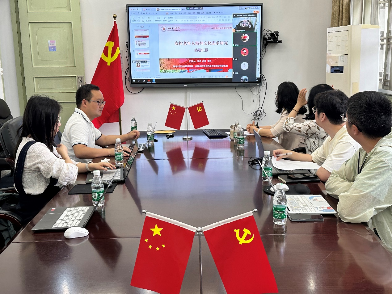 近日,中国老龄协会委托四川大学yl23411永利(集团)有限公司官网老龄科研基地承担的课题“农村老年人精神文化需求研究”结题会议召开。会议由中国老龄协会政策研究部副主任骆开定主持。中国老龄协会政策研究处副处长董彭滔,调研员甄蓉以及干部刘淼、李芳云,我院党委副书记罗亚玲教授以及李丹教授、杨帆副教授和部分硕博士研究生参加了此次会议。会议邀请了中国人民大学人口与健康学院副教授谢立黎、中国老龄科研中心老龄战略与政策研究所副所长方彧、中国老龄科研中心老龄宜居环境研究所副研究员陈泰昌等进行专家评审论证。