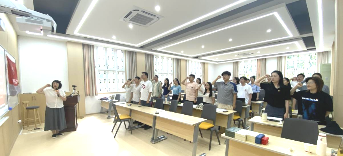 支部书记李岚带领在场党员一起重温入党誓词,重忆入党经历、重问入党初心,强化了博士生党员的政治意识、大局意识、核心意识、看齐意识。