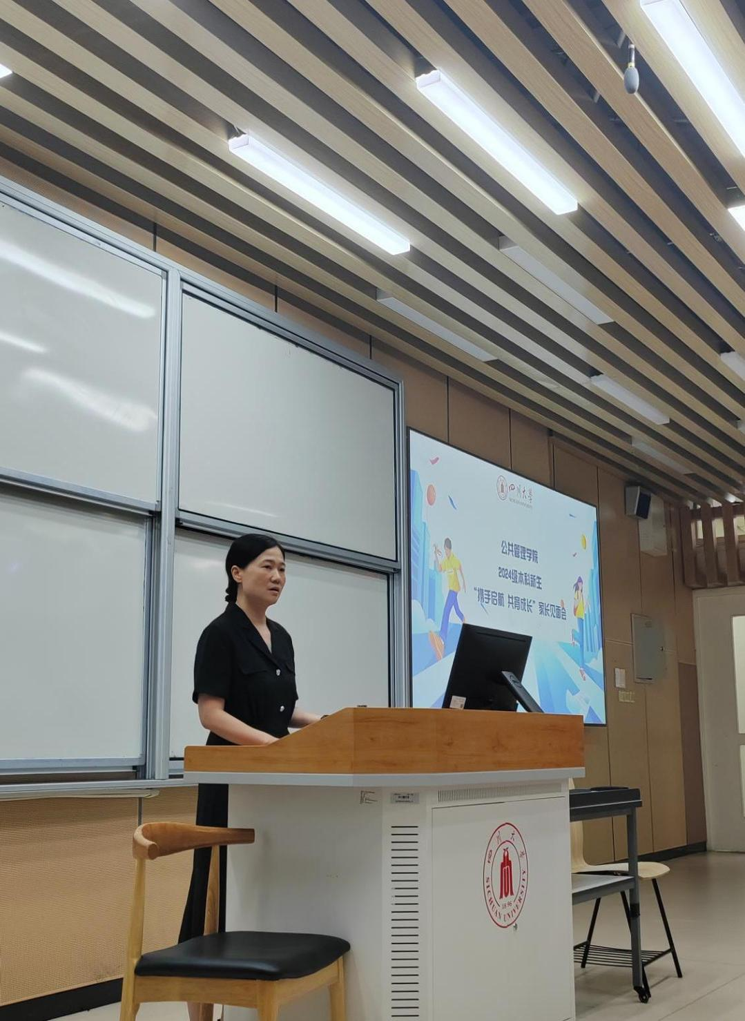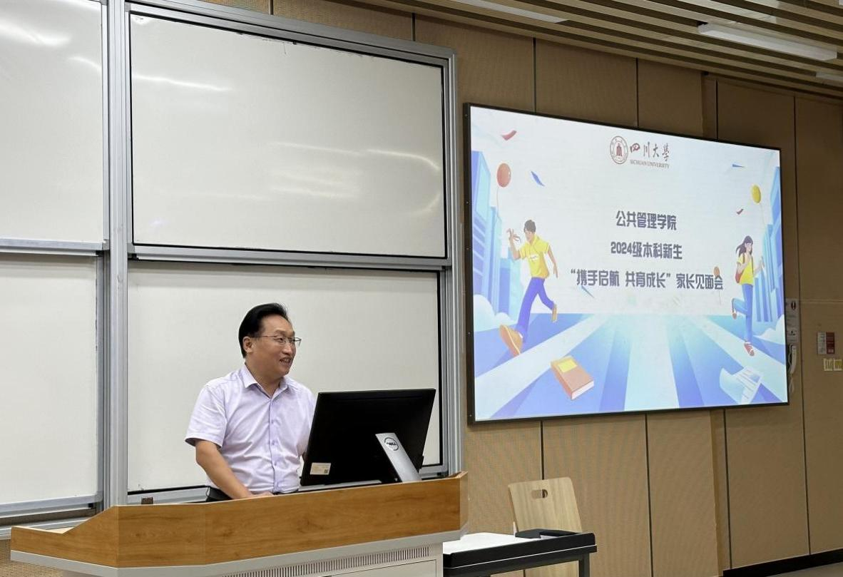 韩杰向与会家长详细介绍了四川大学及yl23411永利(集团)有限公司官网的历史沿革,展现了学校丰硕的研究成果、优质的教育资源与先进的育人理念。韩杰表示,学院将始终践行“公成天下,管法自然”的院训,进一步发挥多学科交叉优势,培养高层次、复合型、应用型的公管人才。