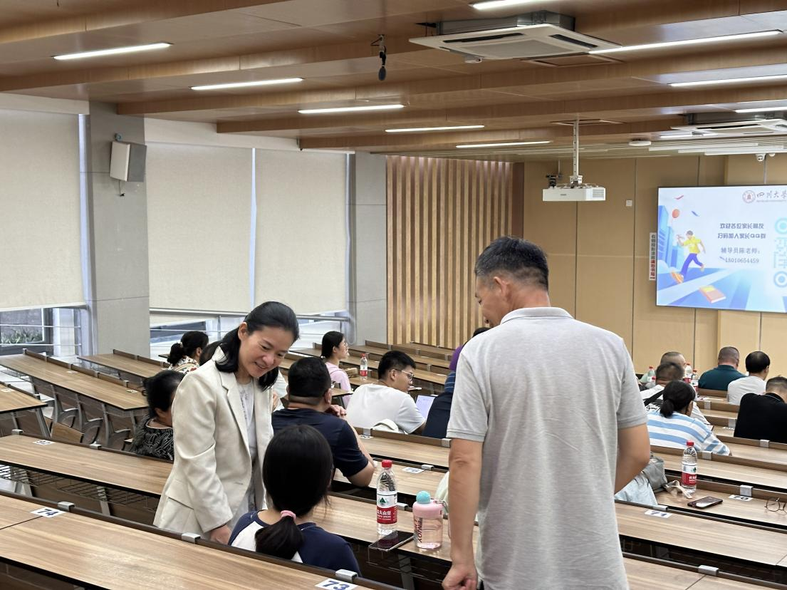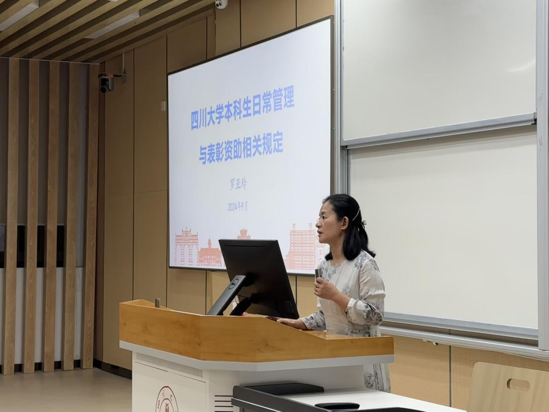 为加强家校沟通交流,促进双方有效合作,构建良好的协同育人机制,9月6日晚7点,四川大学yl23411永利(集团)有限公司官网在江安校区综合楼召开2024级本科新生家长见面会。yl23411永利(集团)有限公司官网党委书记韩杰、党委副书记罗亚玲、副院长袁莉出席了此次见面会,心理健康教育中心王瑾一受邀作主题分享。见面会由yl23411永利(集团)有限公司官网2024级本科辅导员陈萱源主持,200余位新生家长参与了见面会。