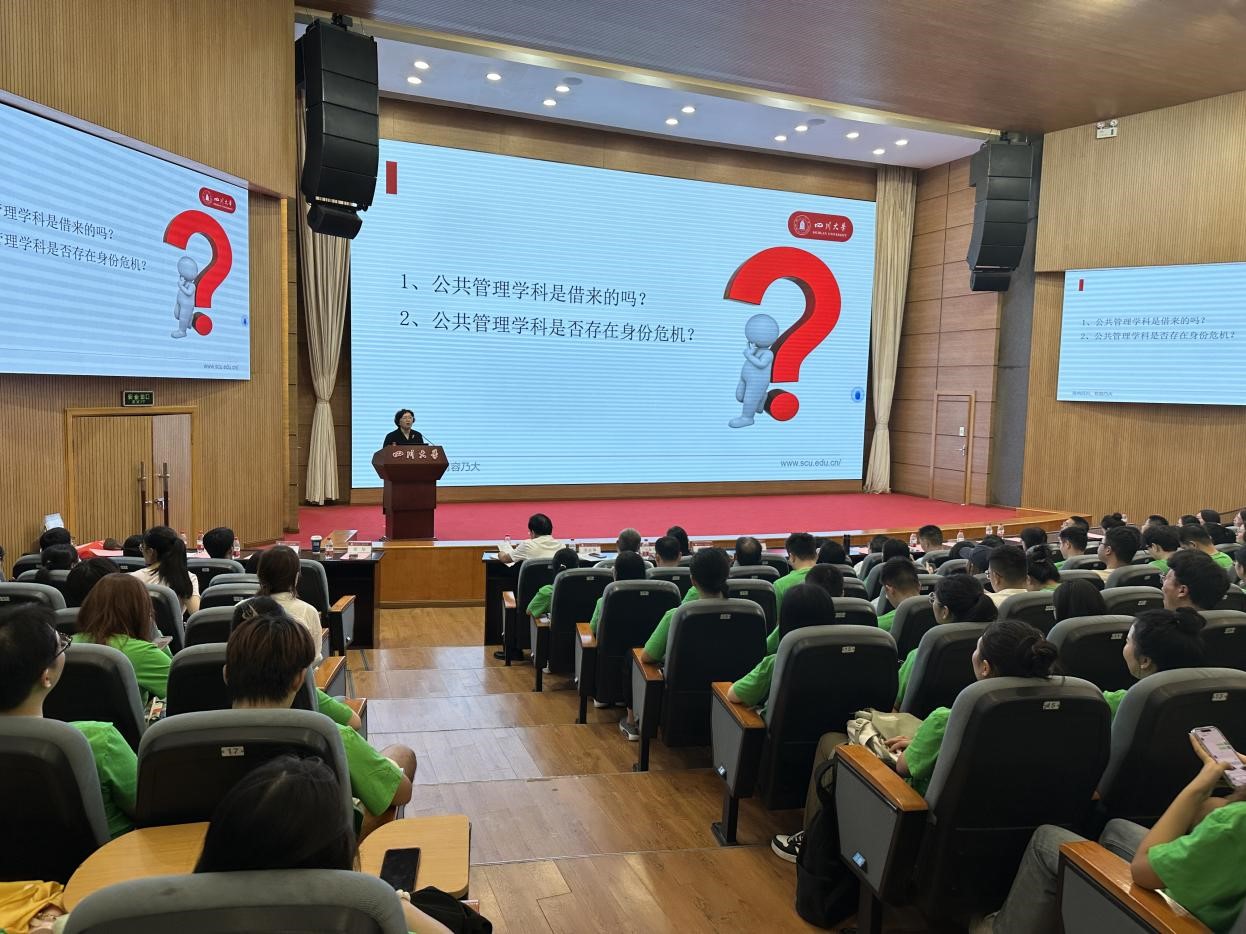 姜晓萍教授为新生带来精彩的开学第一课。她以“迈向公共管理学科共同体”为题,详细阐释了学科共同体的内涵特质,公共管理学的研究主题和知识应用,号召全体新生坚守公共精神,拓展学术思维,培养问题意识,锻炼学习韧性,肩负时代使命。