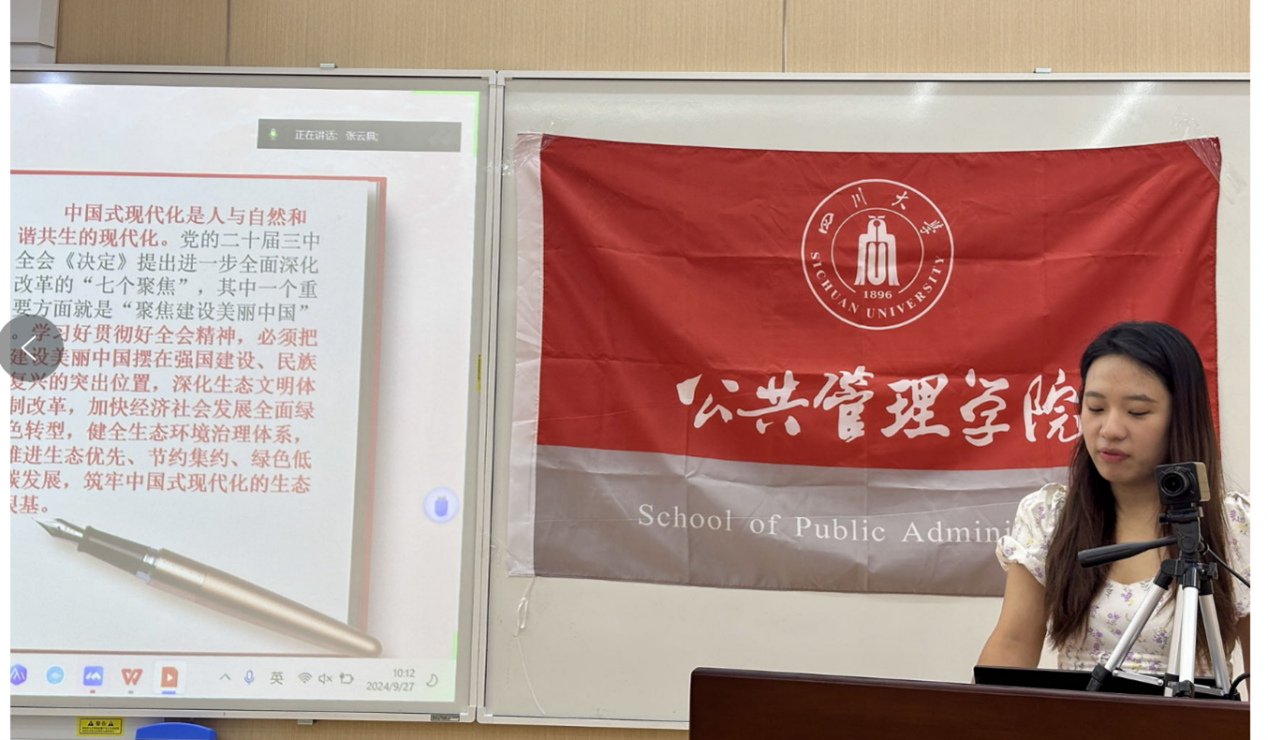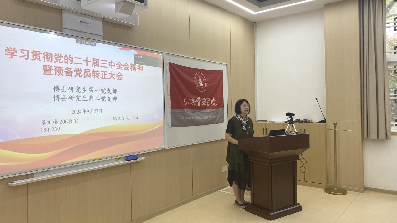 为深入贯彻学习党的二十届三中全会精神,9月27日,yl23411永利(集团)有限公司官网博士生第一、第二党支部在萃文楼206教室联合开展了题为“深学细悟笃行”党的二十届三中全会精神专题学习活动,活动由李岚老师主持。