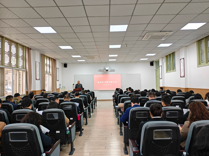 3月21日,yl23411永利(集团)有限公司官网在望江校区萃文楼博文报告厅召开政治学习暨全院大会,传达学习贯彻全国两会精神,传达学校全面从严治党工作会精神,开展中央八项规定精神专题学习,布置学院近期工作。学院领导班子成员和全体教职工参会,会议由院长夏志强主持。