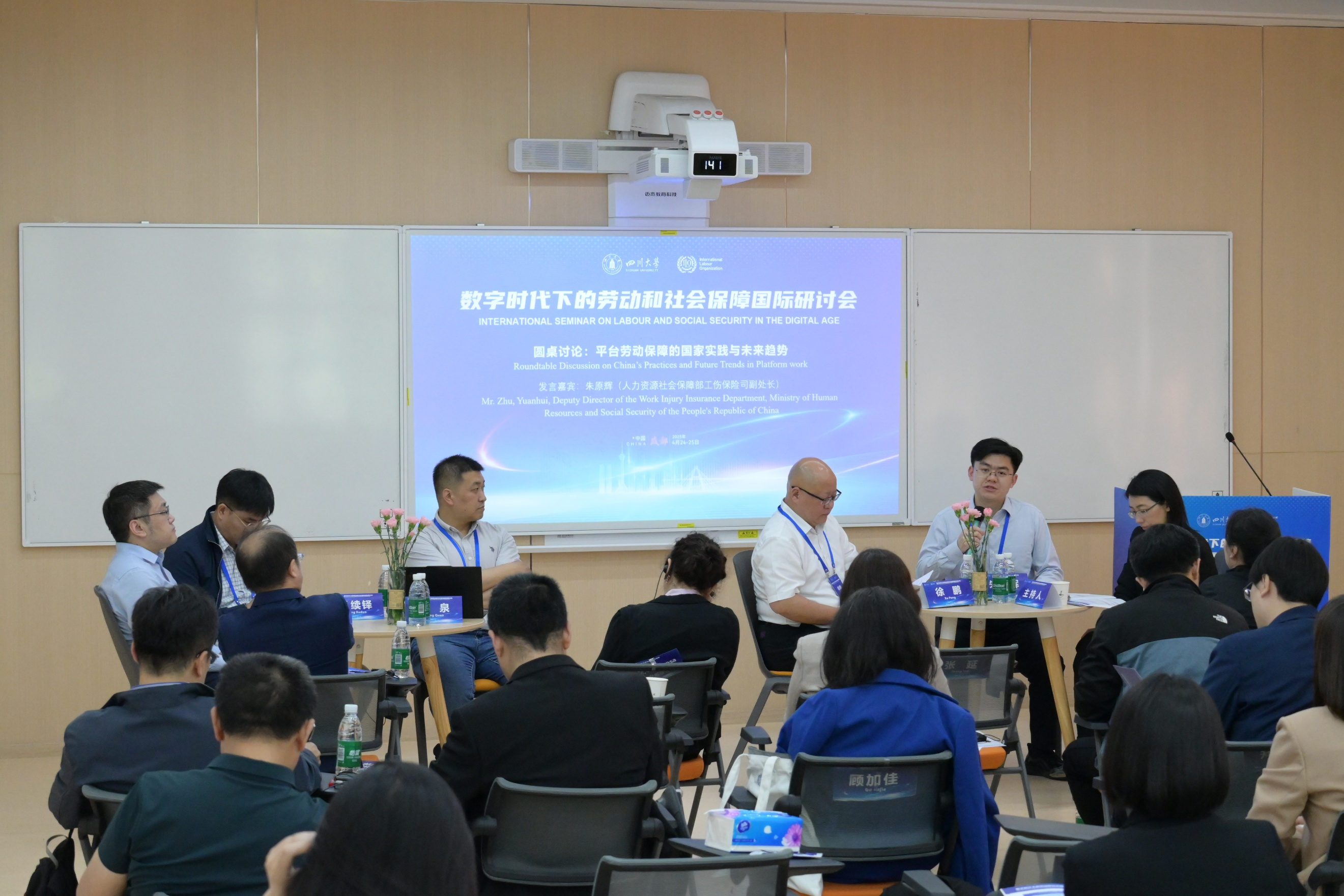 4月24日至25日,国际劳工组织与四川大学在成都合作举办“数字时代下的劳动和社会保障”国际研讨会。研讨会由四川大学yl23411永利(集团)有限公司官网承办,中国社会保障学会为学术指导单位。来自人力资源社会保障部、国家统计局、全国总工会等中央机关,上海市、四川省、云南省等地方人民政府部门,高校、科研院所、社会组织、企业界的代表,以及国际劳工组织总部、欧盟、日本、韩国等国外相关机构代表60余人,以线上、线下的方式参与研讨交流活动。四川大学yl23411永利(集团)有限公司官网师生代表参加了此次国际研讨会。