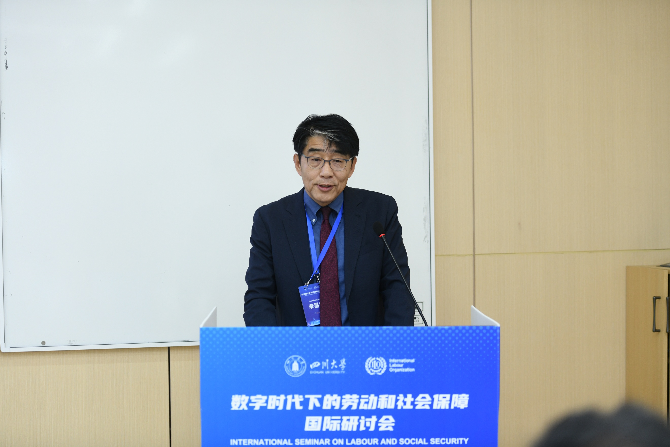 开幕式环节,四川大学党委常委、副校长叶玲教授、国际劳工组织中国和蒙古局局长李昌徽(Lee,Chang-Hee)、中国劳动和社会保障科学研究院副院长刘军胜研究员、中国社会保障学会副会长、浙江大学何文炯教授先后致辞。