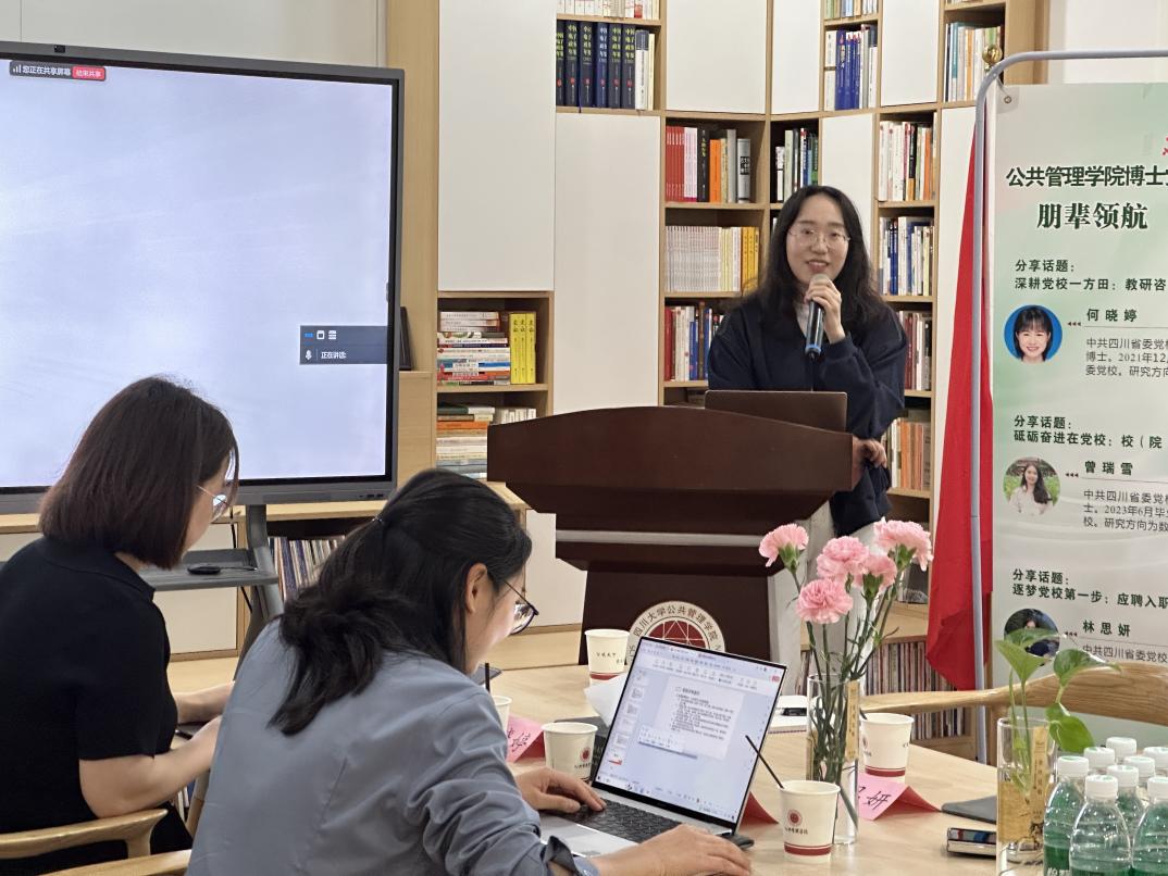 为深化校地党建联建,助力青年学者成长与职业规划,四川大学yl23411永利(集团)有限公司官网博士生第一、第二党支部于4月29日共同举办了第七期“朋辈领航·博采众长”主题党日活动。本次活动特邀中共四川省委党校何晓婷、曾瑞雪、林思妍三位老师分享了在党校求职及工作的经验。李岚老师主持会议,部分博士生和干部教育学硕士生通过线上线下联动参会。