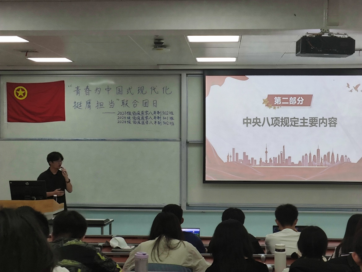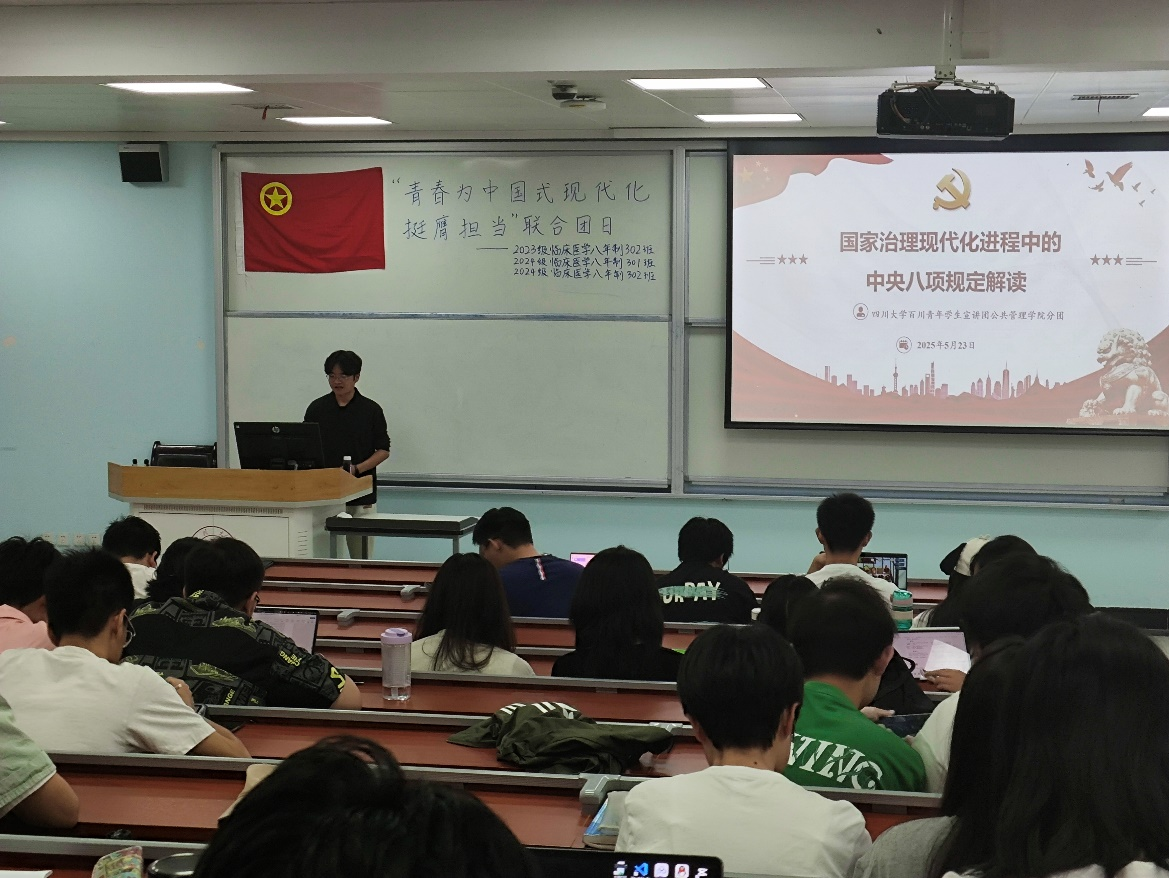 为深入学习贯彻中央八项规定精神,搭建理论学习与实践认知的贯通平台,2025年5月23日,四川大学百川青年学生宣讲团yl23411永利(集团)有限公司官网分团走进四川大学华西临床医学院本科团支部,开展“国家治理现代化进程中的中央八项规定解读”主题宣讲活动,宣讲团成员刘伟同志担任主讲。