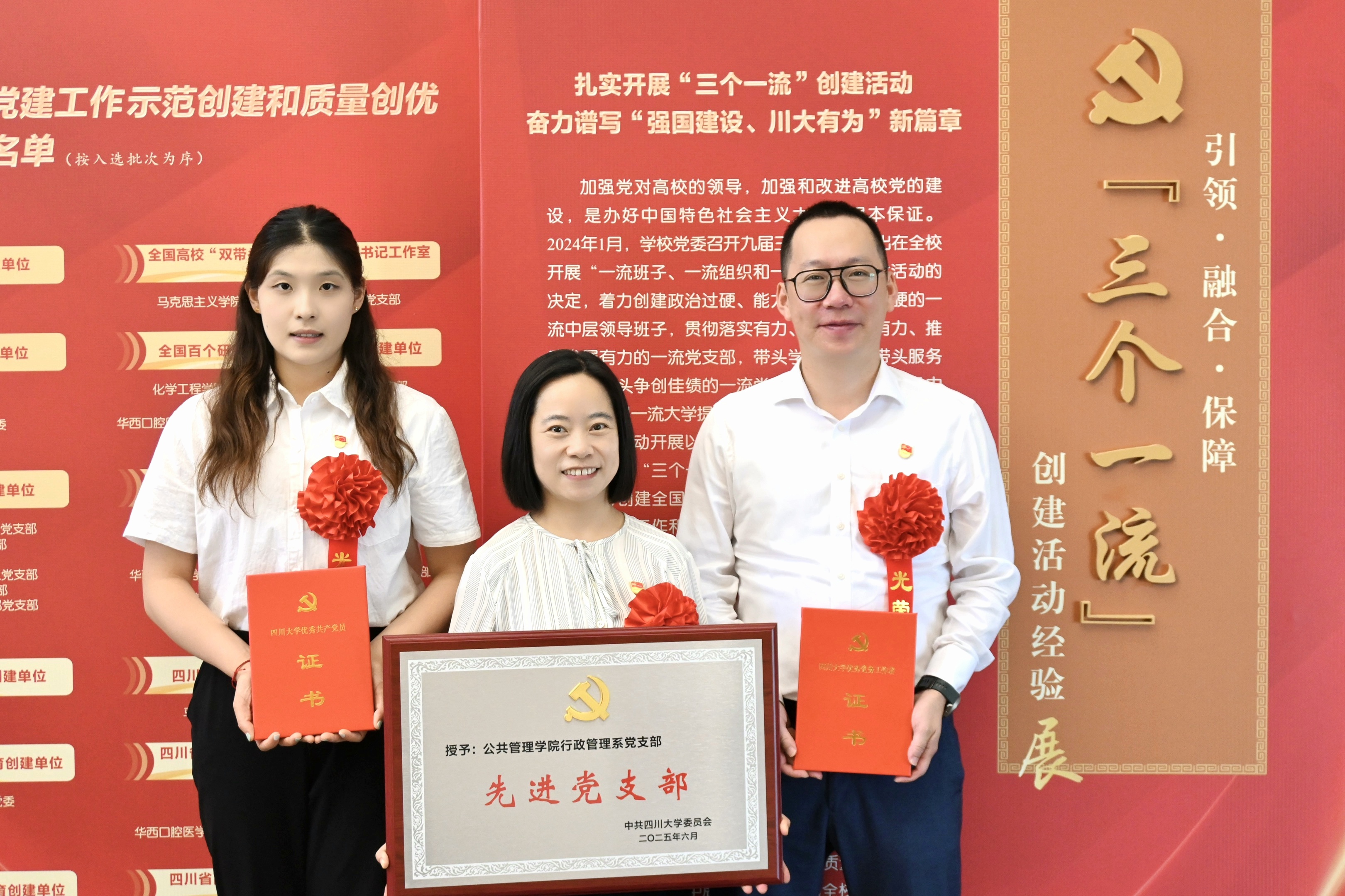 会上,我院行政管理系党支部被授予“四川大学先进党支部”称号,王颜青同志被授予“四川大学优秀共产党员”称号,林茂松同志被授予“四川大学优秀党务工作者”称号。